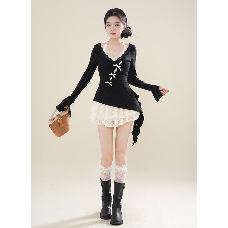 2025年秋冬纯欲风收腰显瘦针织罩衫蕾丝内搭连衣裙气质甜美两件套
