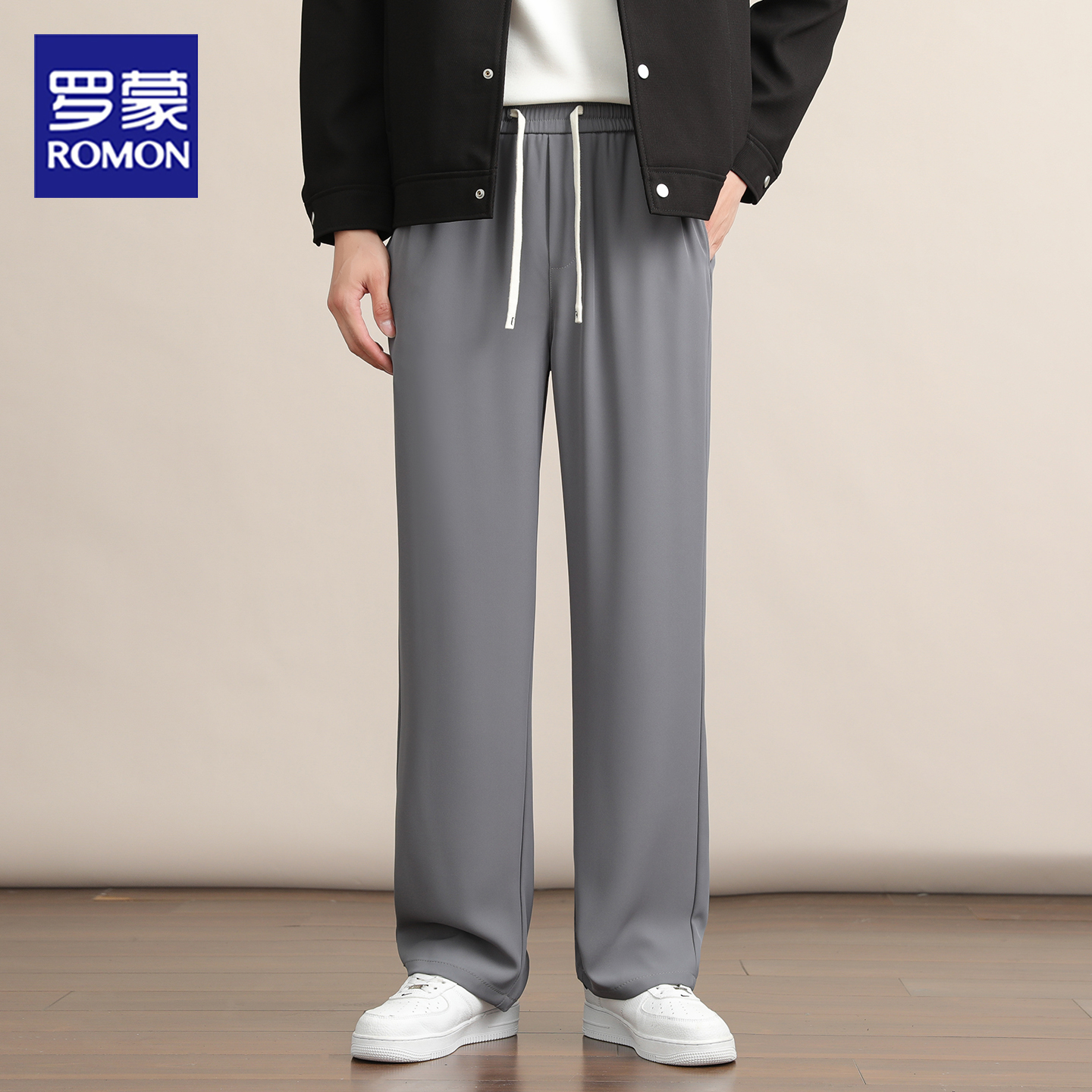 罗蒙抽绳西裤宽松直筒系绳休闲裤