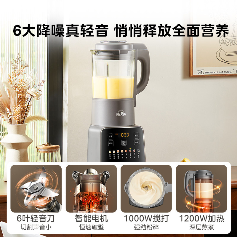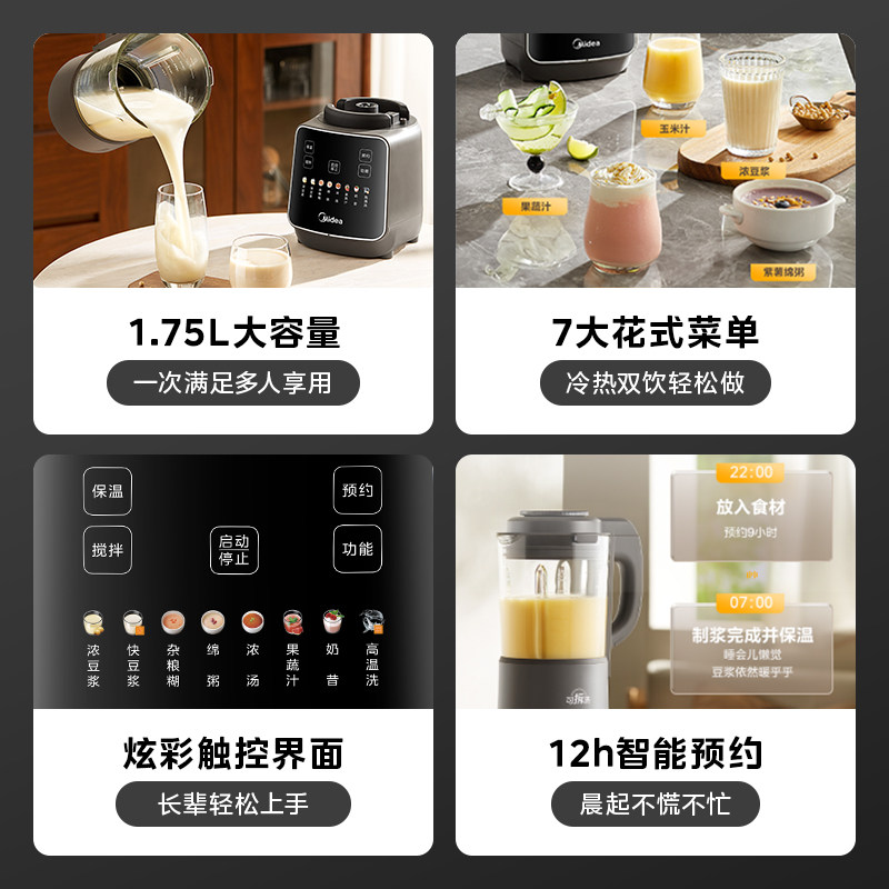 美的家用破壁机全自动可拆洗豆浆榨汁轻音免过滤料理机官方新款