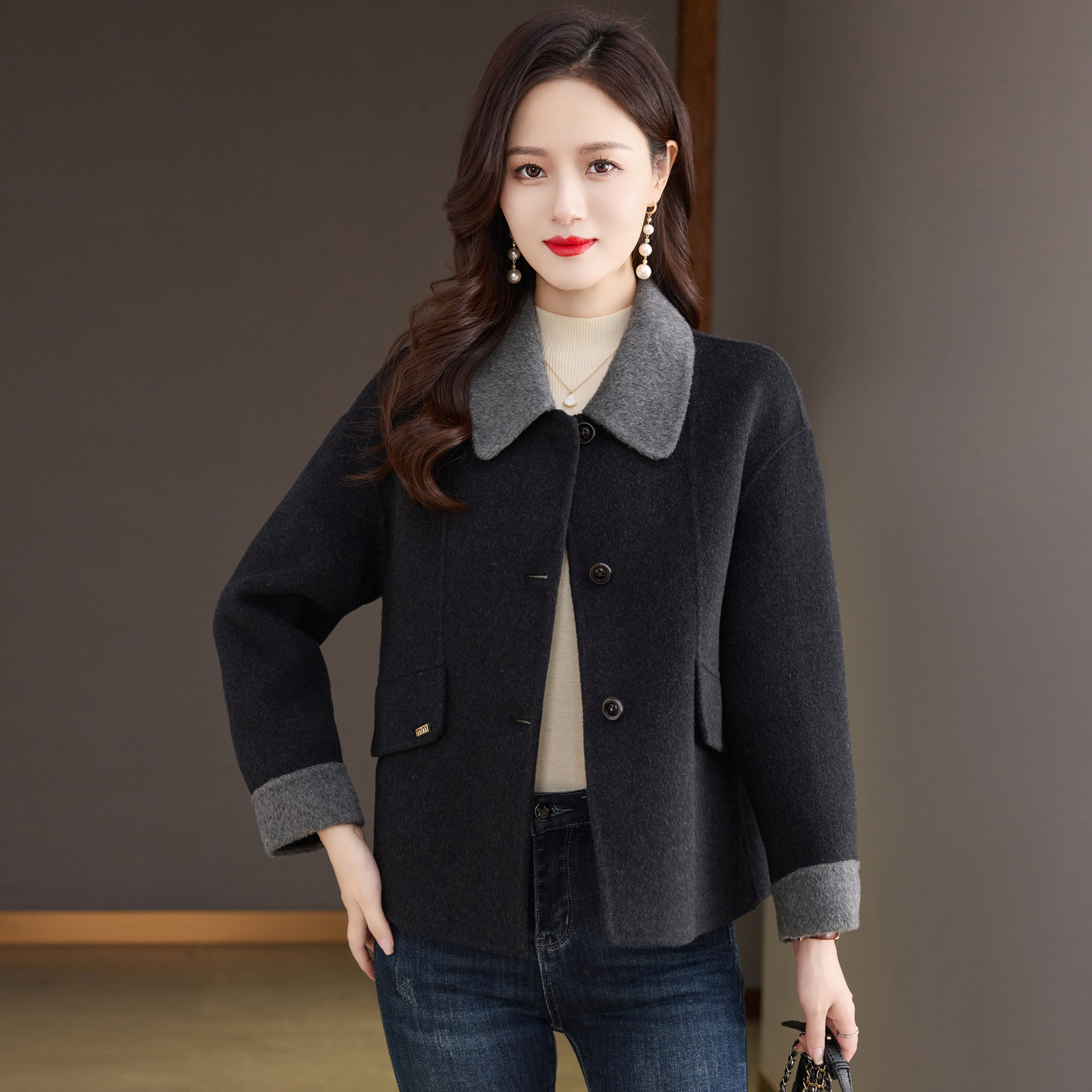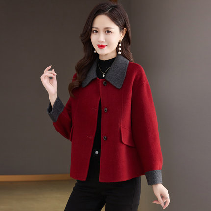 拼色宽松短款双面羊绒大衣女2025年新款羊毛呢子中年妈妈秋冬外套