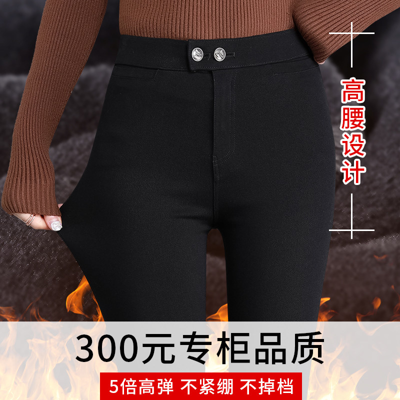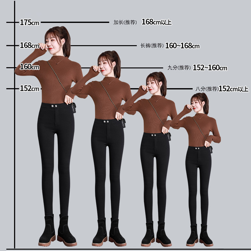 155小个子加绒打底裤女秋冬季可外穿高腰显瘦紧身弹力小脚裤黑色