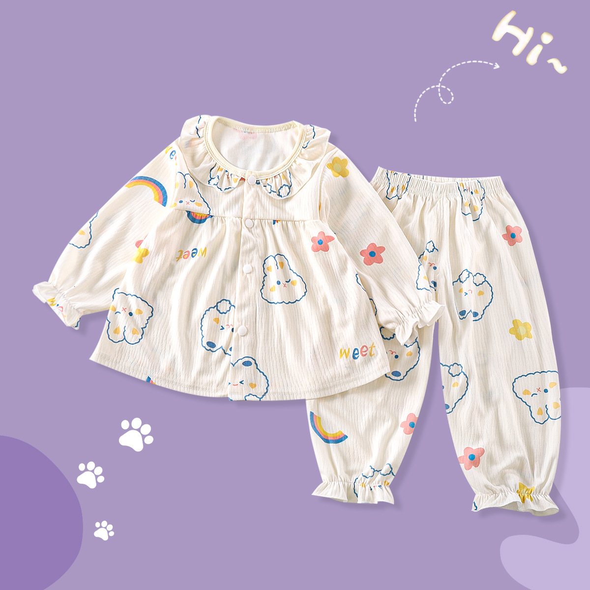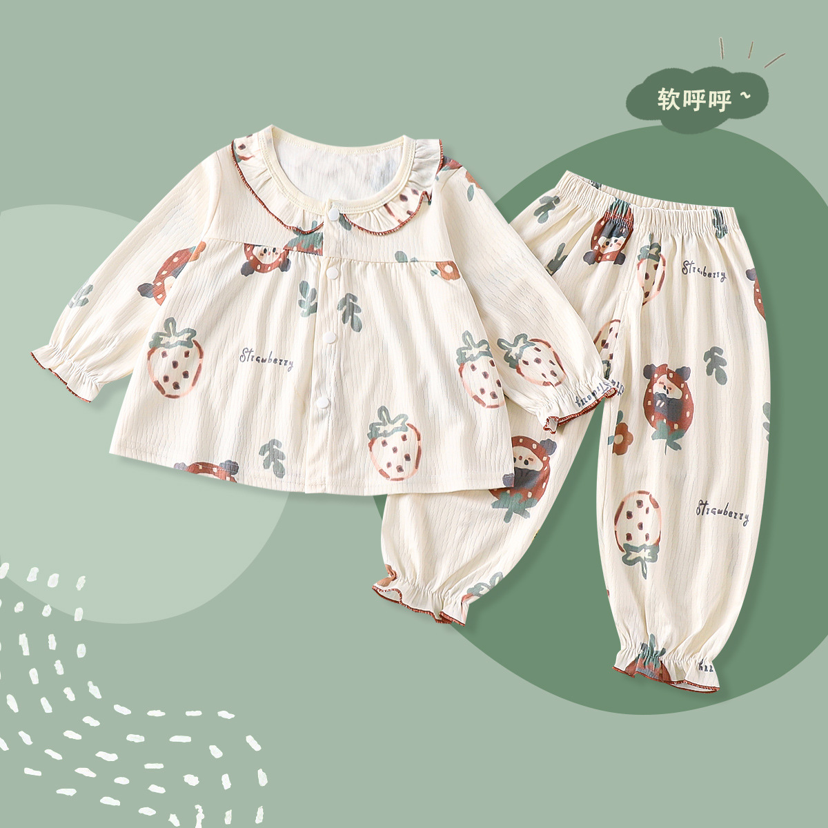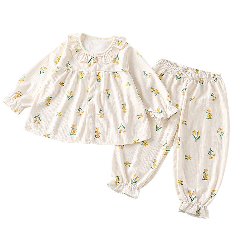 秋冬新款儿童睡衣家居服亲子套装女童甜美可爱花边中大童公主风