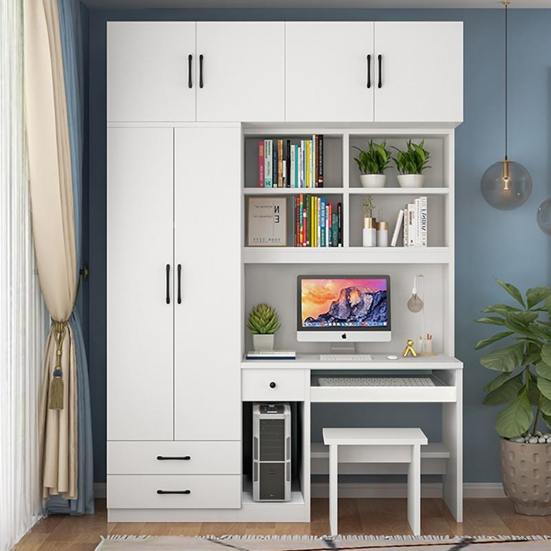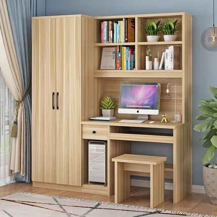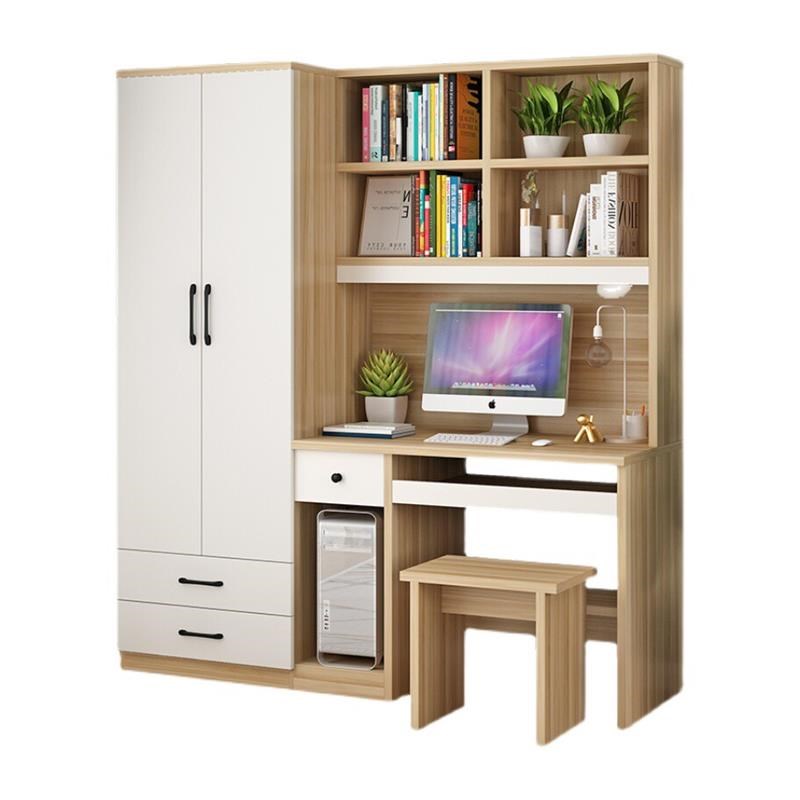 儿童衣柜书桌一体小户型卧室简约现代电脑桌写字台带书柜组合家用