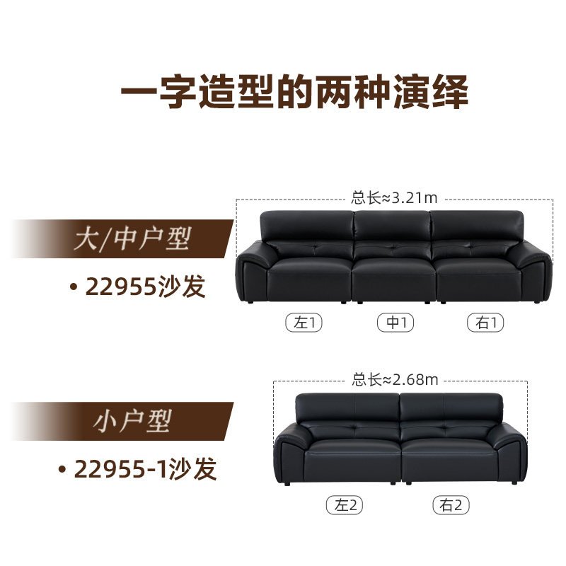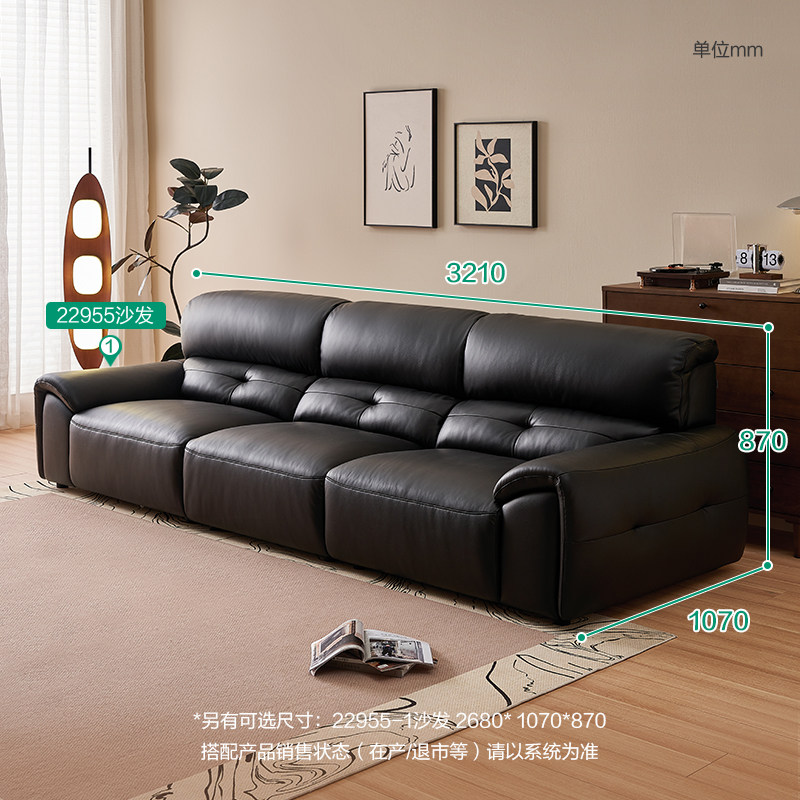 全友家居门店同款 时尚风 22955 头层真黄牛皮一字型直排皮艺沙发