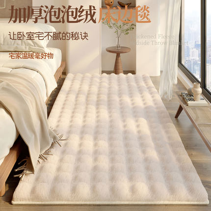 加厚床边毯仿兔毛卧室衣帽间地毯客厅冬季保暖防滑纯色奶油风地垫