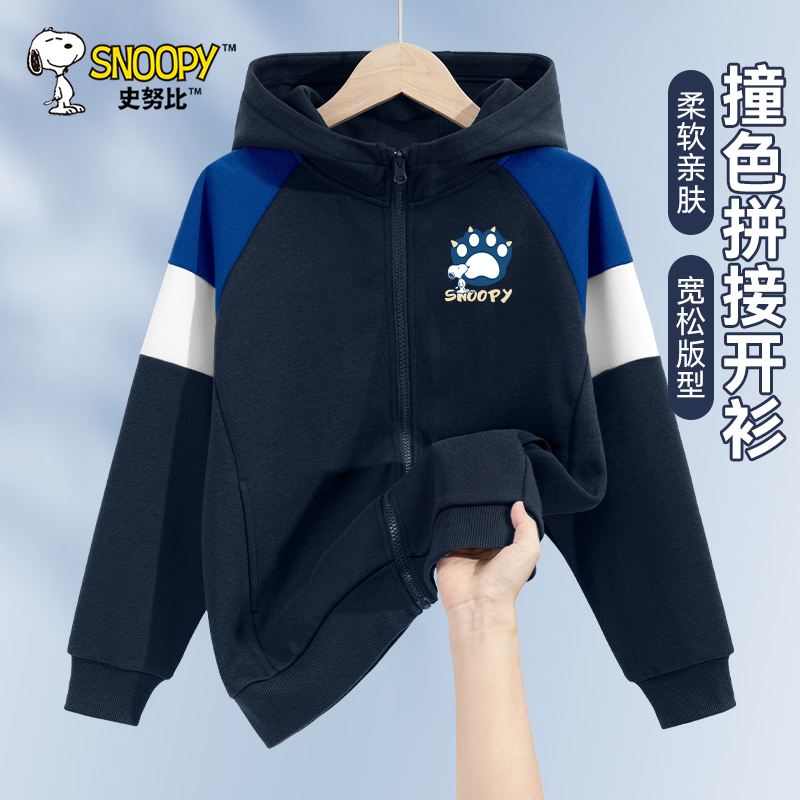 史努比男童秋装外套2025新款帅气时髦上衣春秋款儿童宽松连帽卫衣