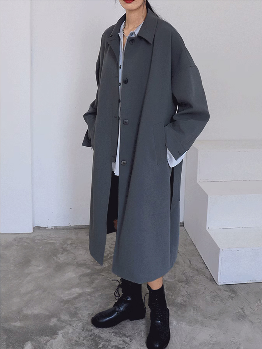落肩英伦宽松收腰风衣CHICVEN