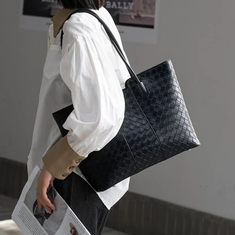 时尚编织大容量单肩手提真皮包