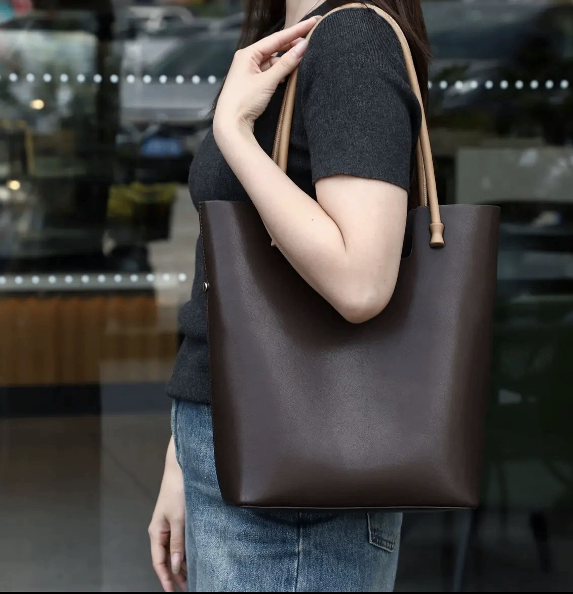 商场同款牛皮托特包2025新秋冬女包时尚编织大容量单肩手提真皮包