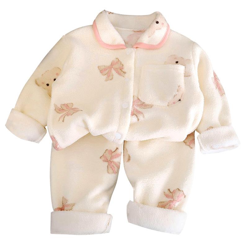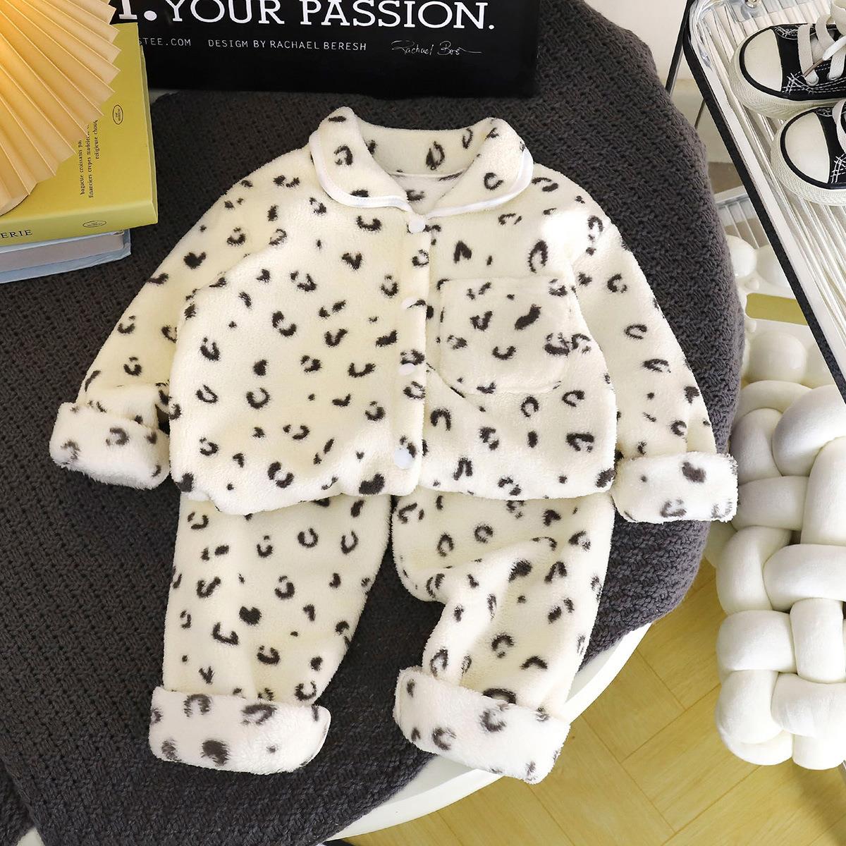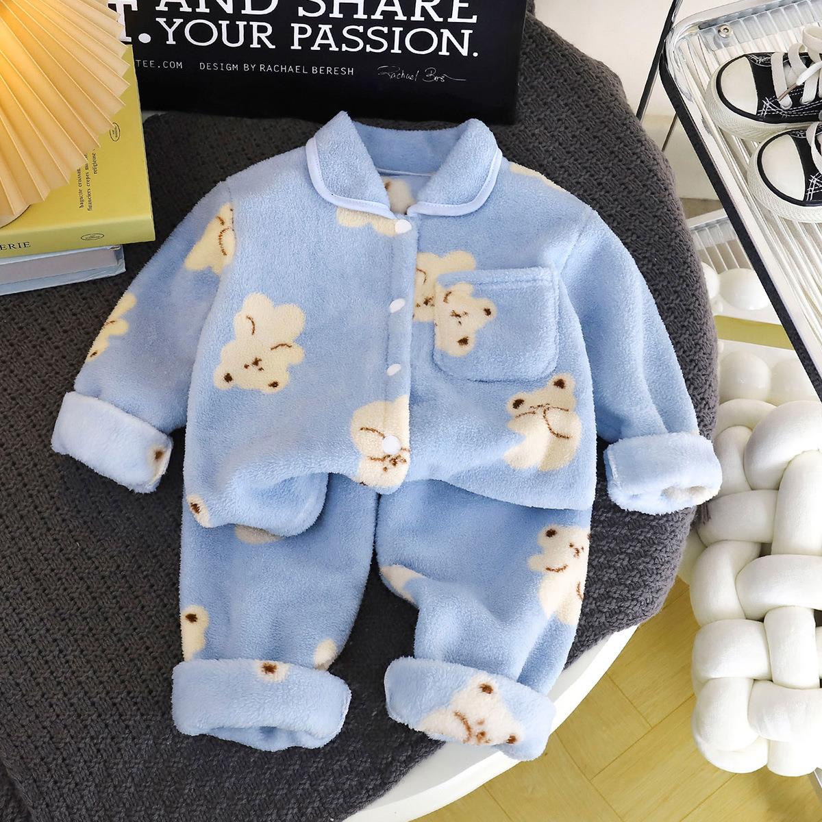 儿童睡衣套装新款男童加绒加厚女童法兰绒保暖家居服开衫童装