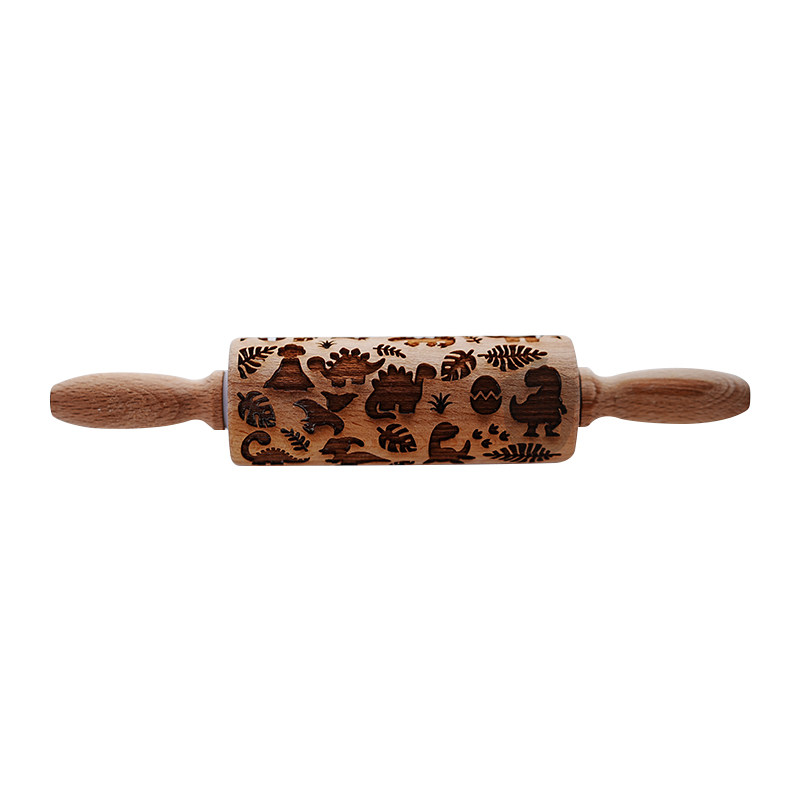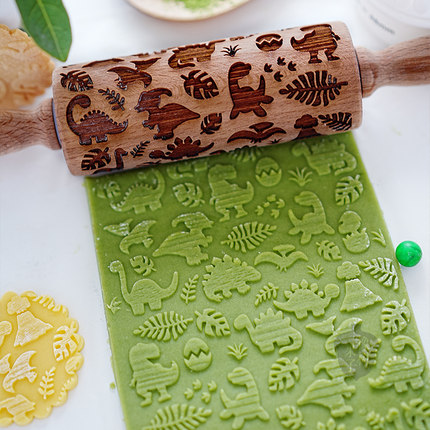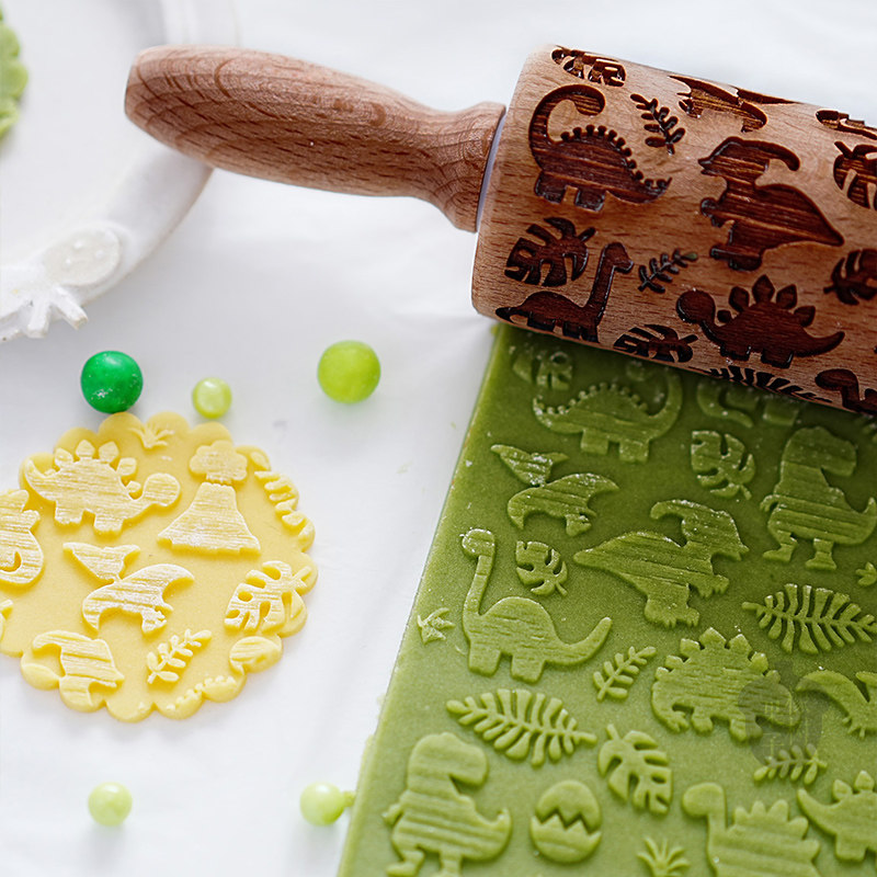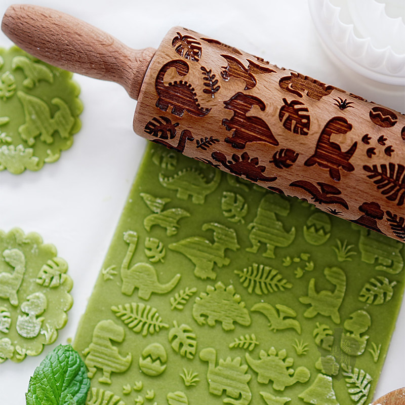 橡树果子ins风恐龙擀面杖霸王龙龟背竹饼干模 糖牌进口榉木手压模