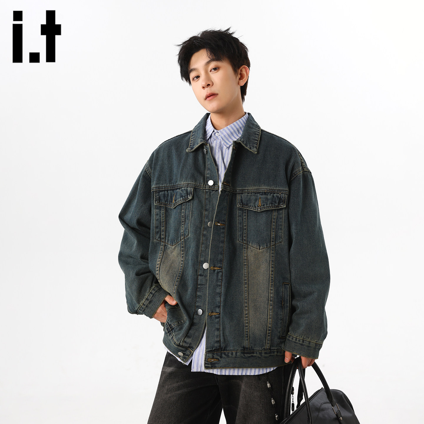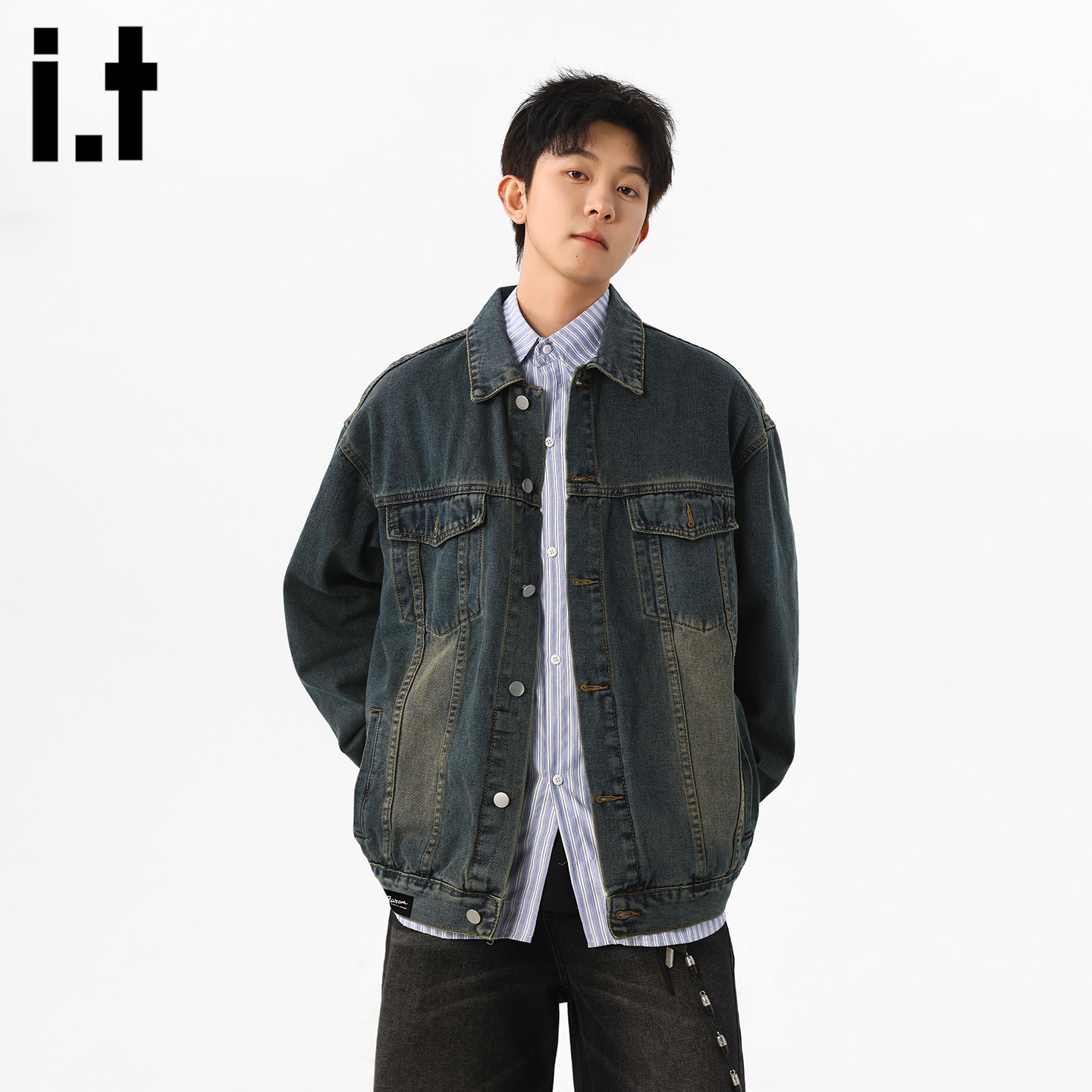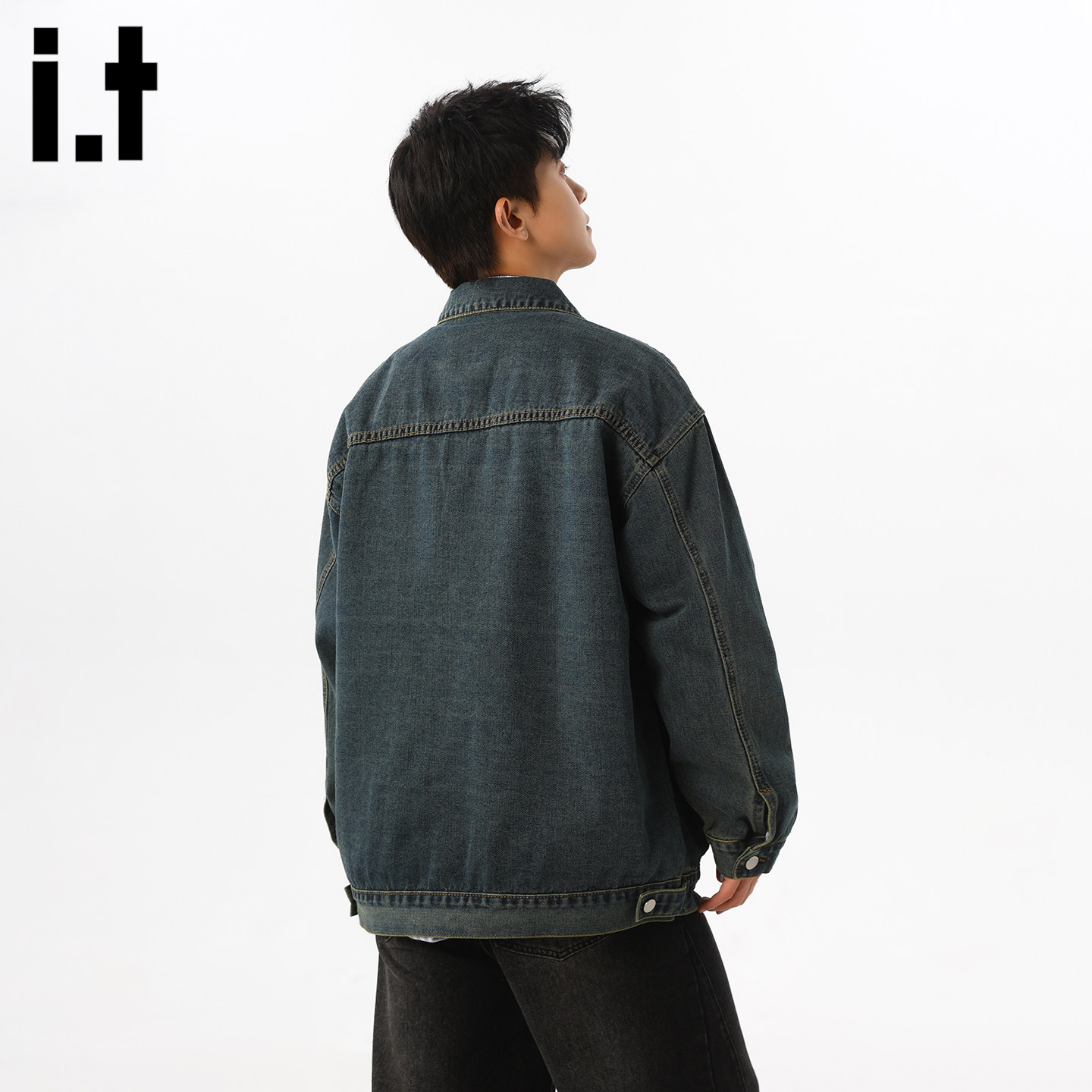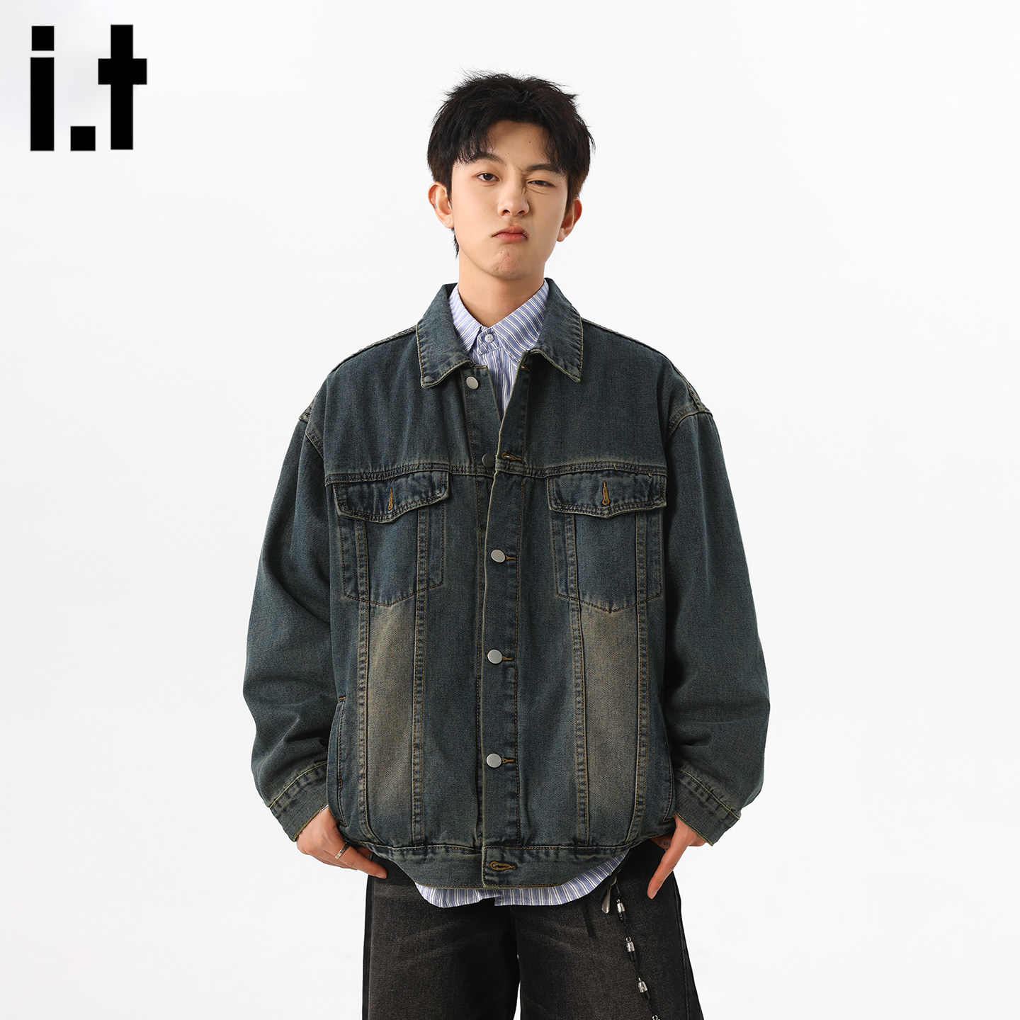 it :5cm/FIVECM美式复古水洗做旧牛仔外套男潮流宽松休闲百搭夹克