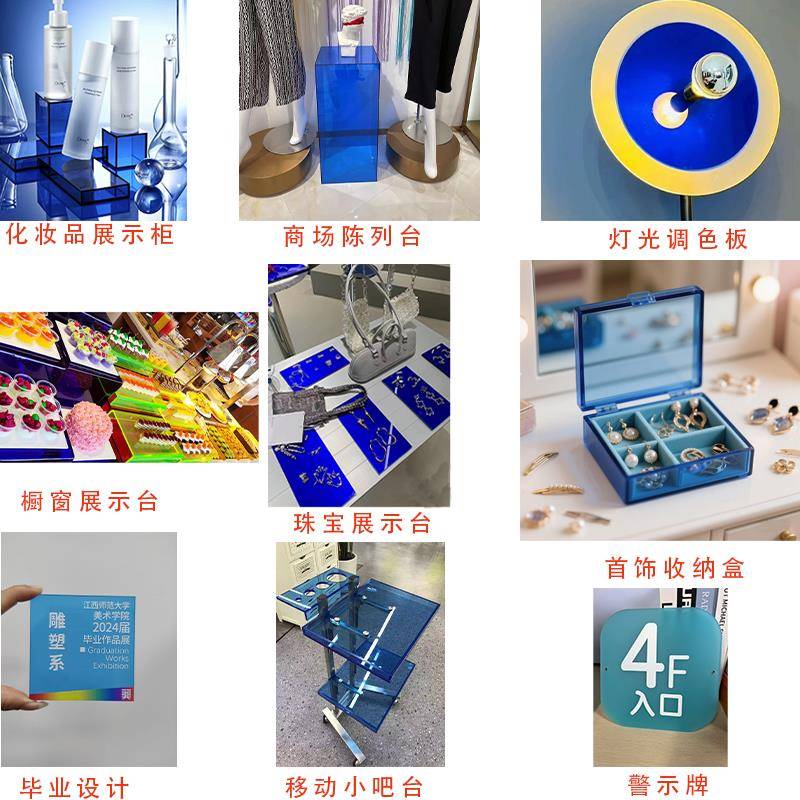 深浅蓝色透明亚克力板磨砂透光蓝色镜面蓝色亚克力板定制加工周边
