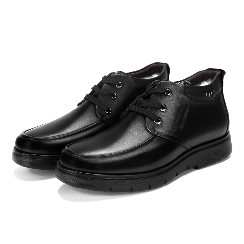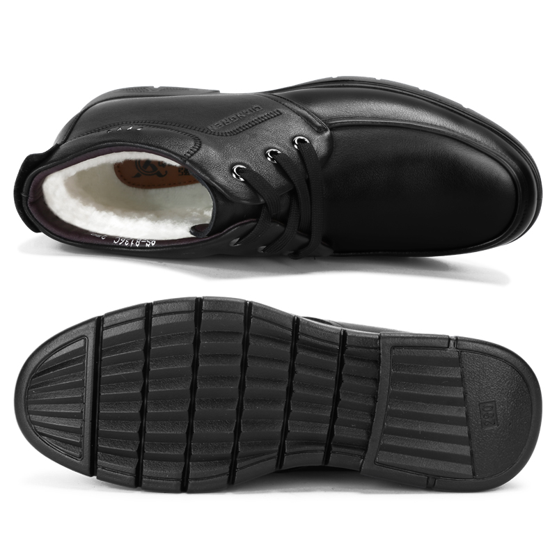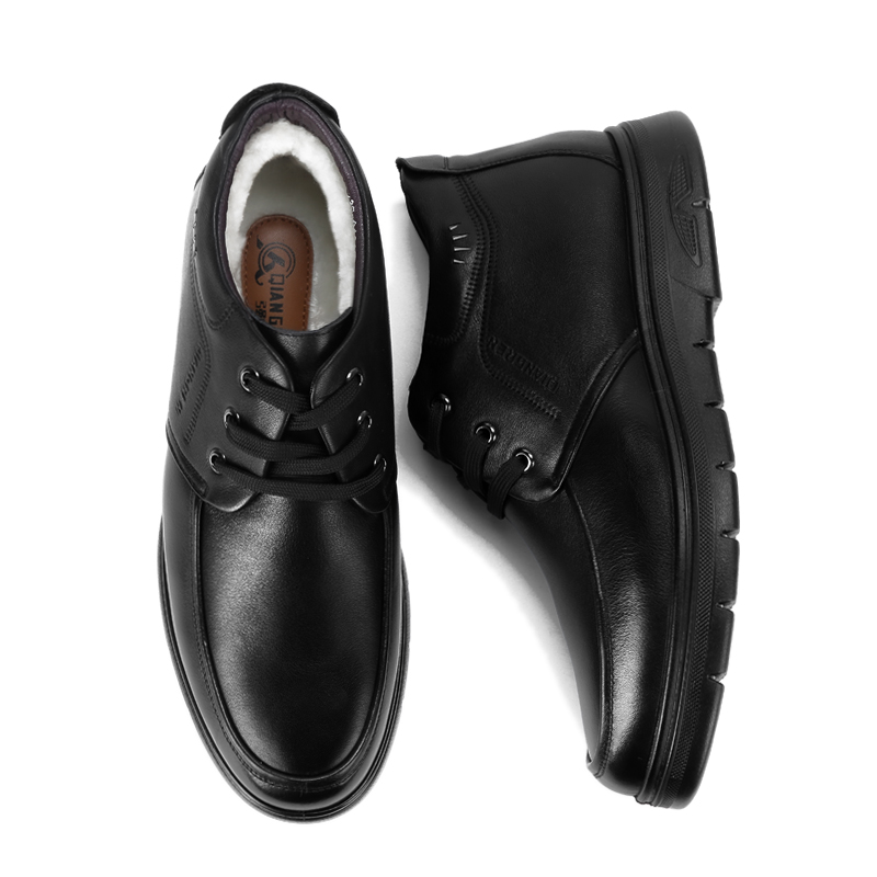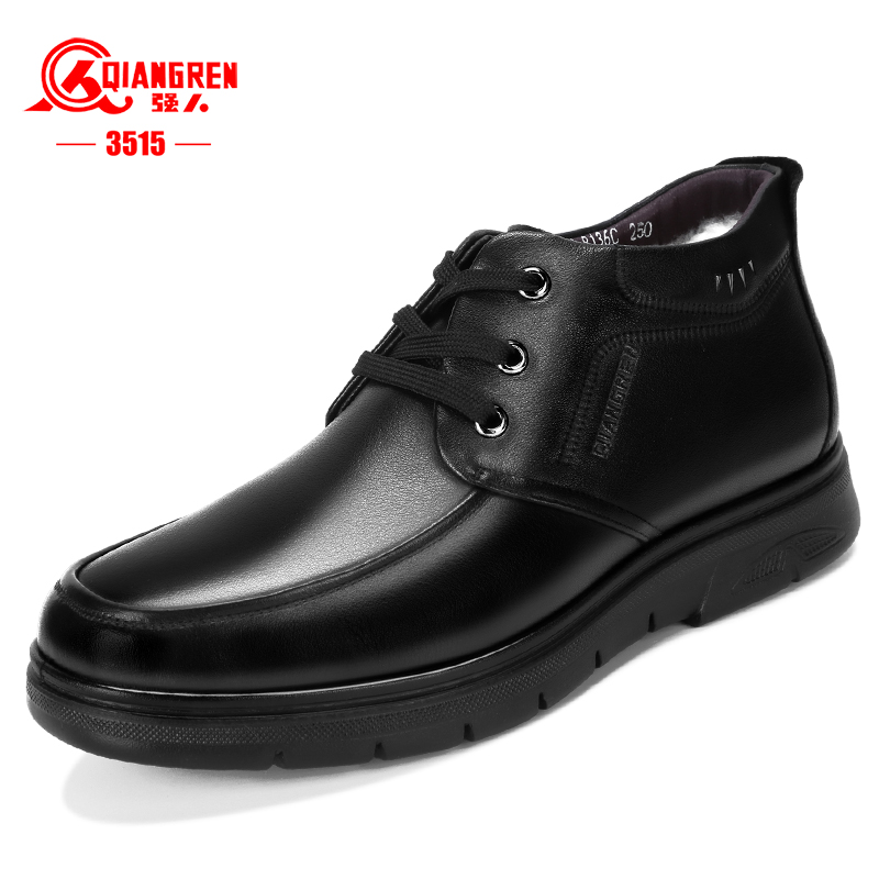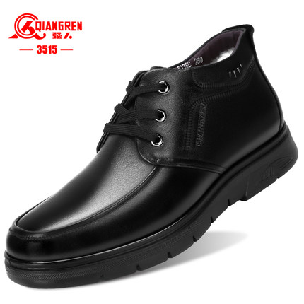 3515强人男鞋冬季保暖高帮鞋羊毛靴真皮老人防滑棉鞋中老年爸爸鞋