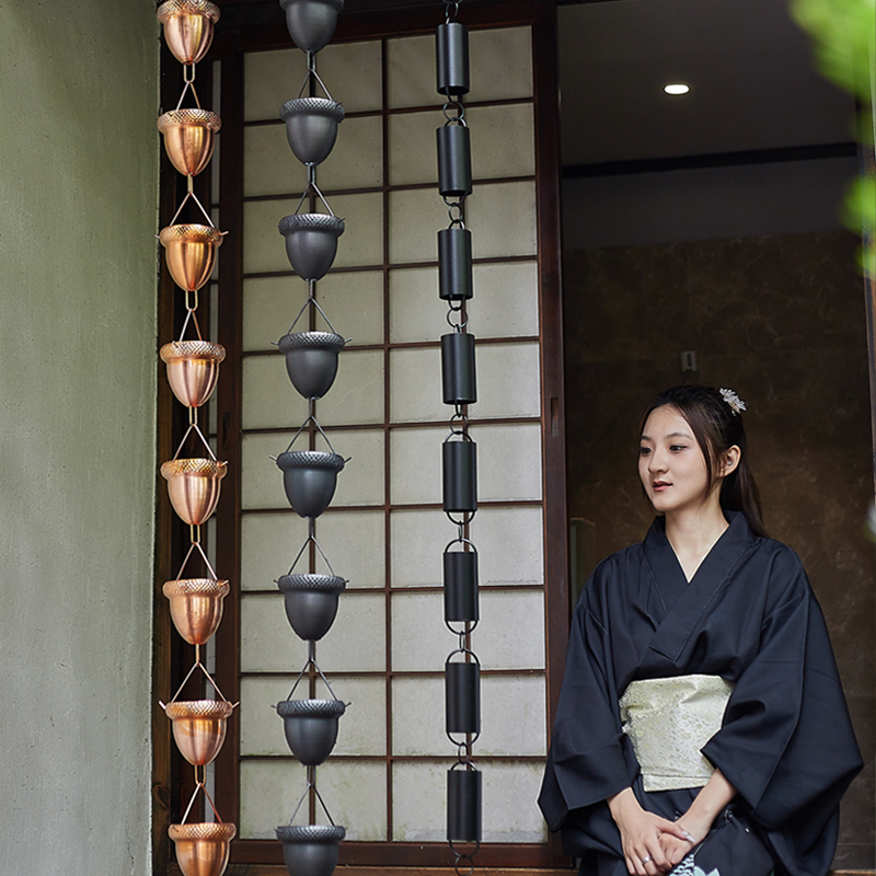 紫铜别墅庭院竹筒雨链日式屋檐引水链民宿排水雨水链天沟落水装饰