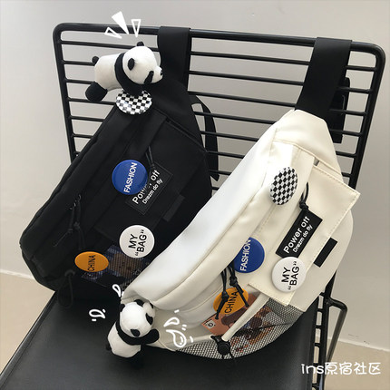 ins工装风斜挎胸包男士潮牌日系原宿骑行学生女腰包运动情侣款