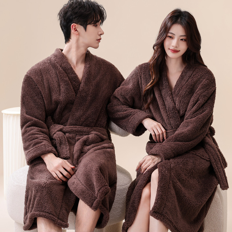 秋冬加厚睡袍男女同款浴袍珊瑚绒中长气质日式睡衣法兰绒长袍晨袍