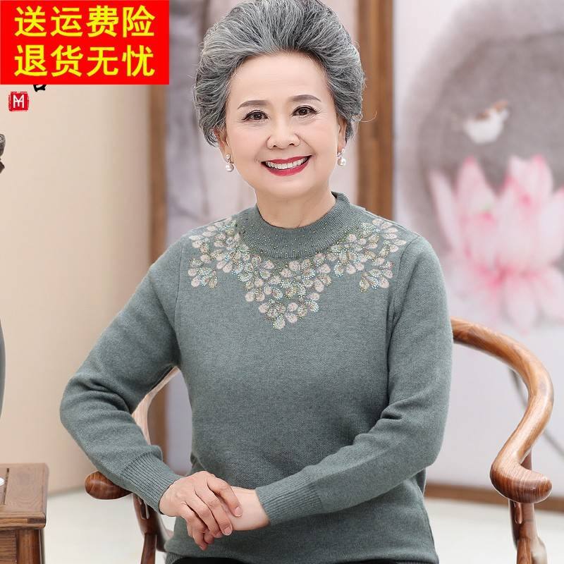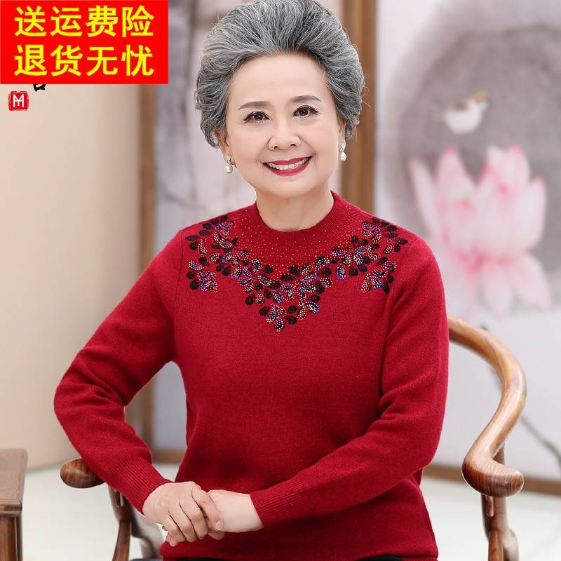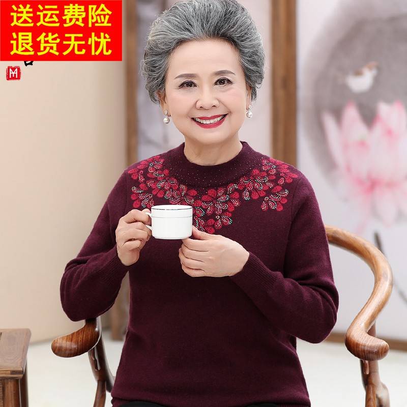 妈妈秋冬毛衣女老人衣服中老年人冬装打底衫奶奶羊毛针织保暖加厚