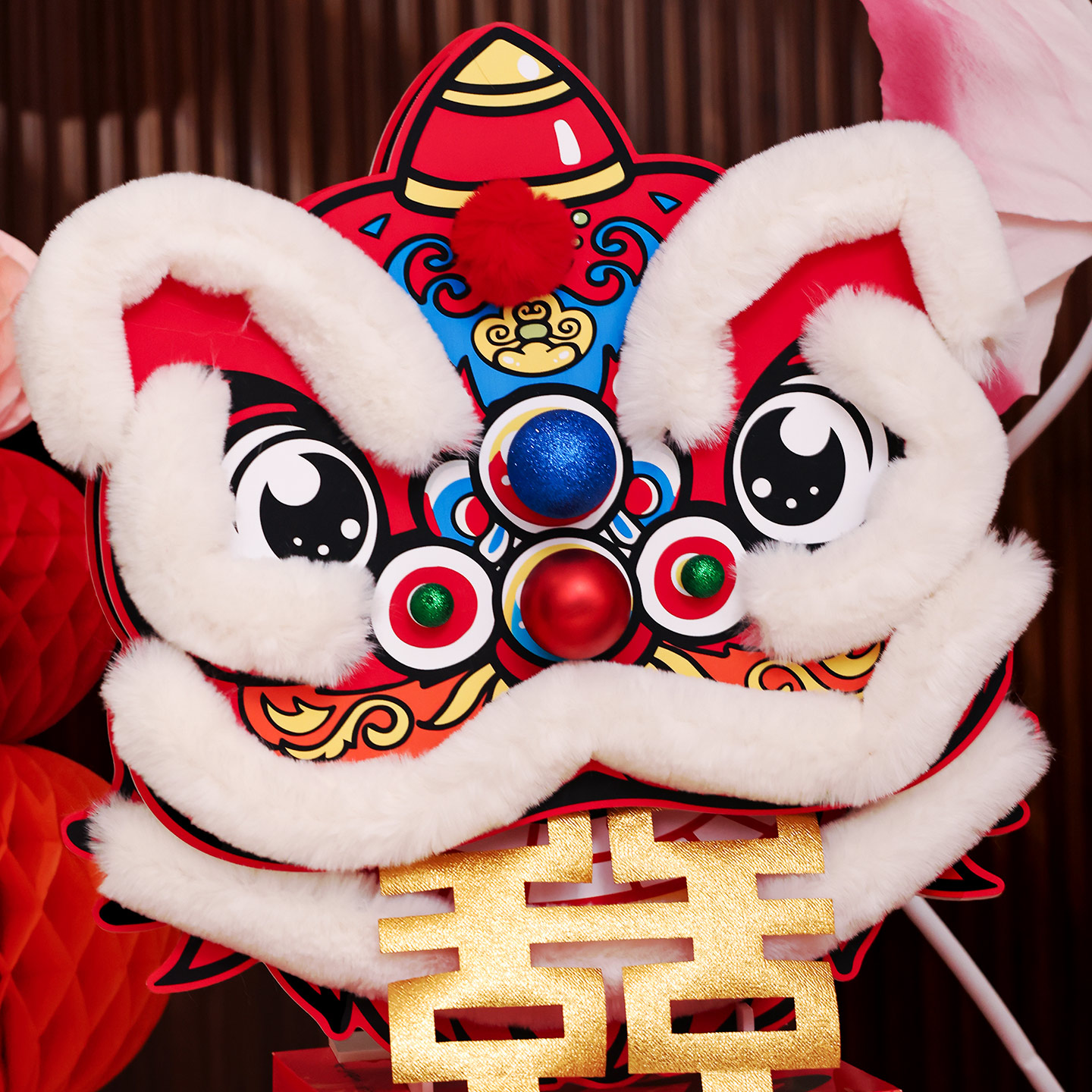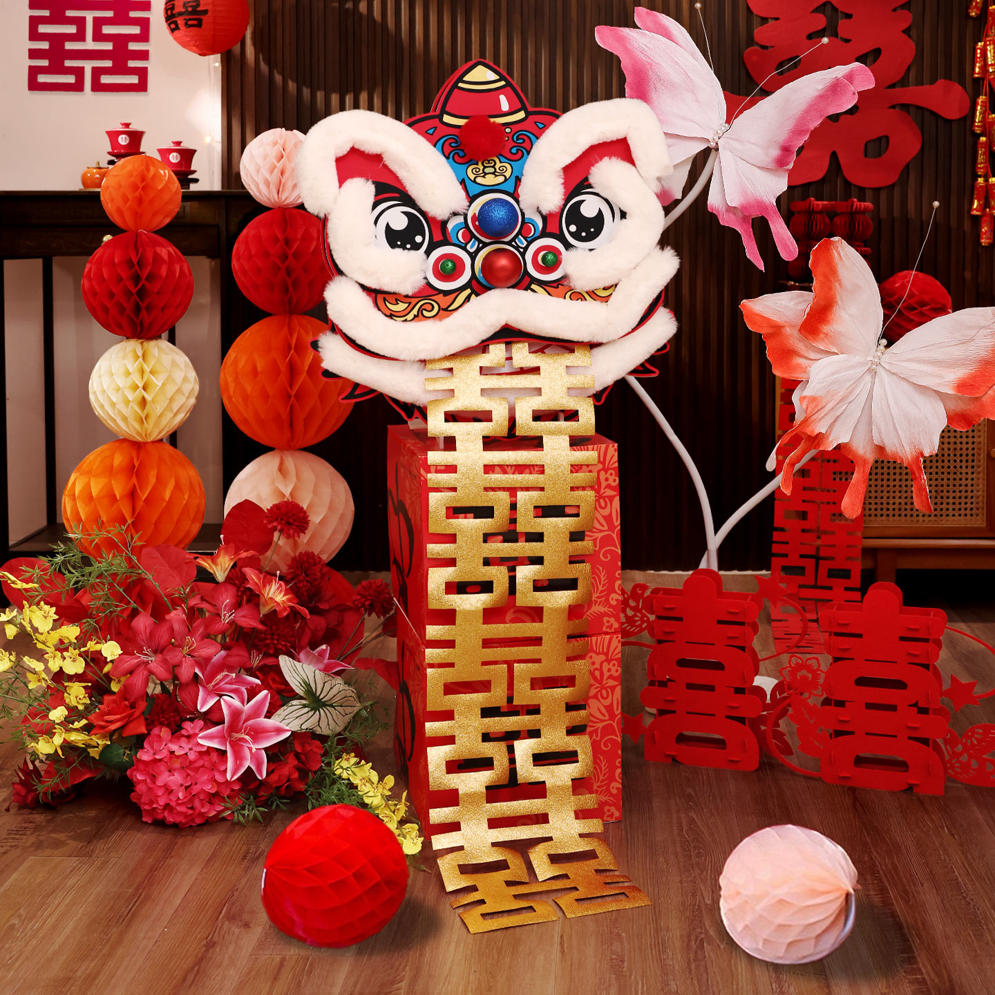 结婚醒狮布置婚房客厅狮子头摆件女方晨袍拍照道具婚庆用品大全