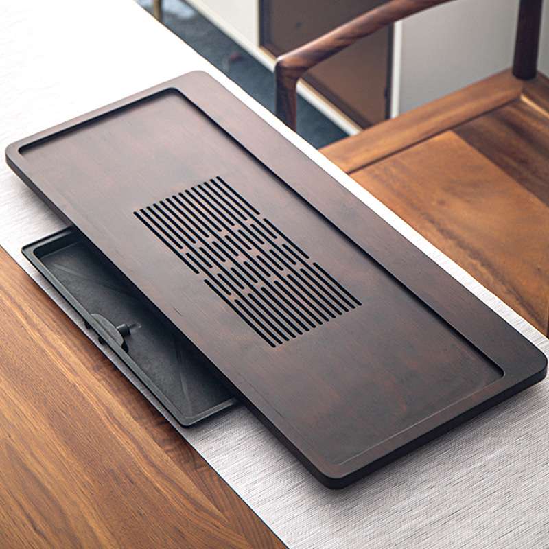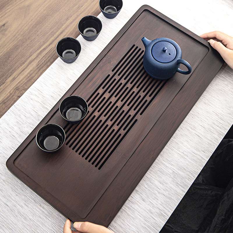 长方竹制茶盘胡桃色家用沥水茶台现代简约储水排水茶海干泡盘托盘
