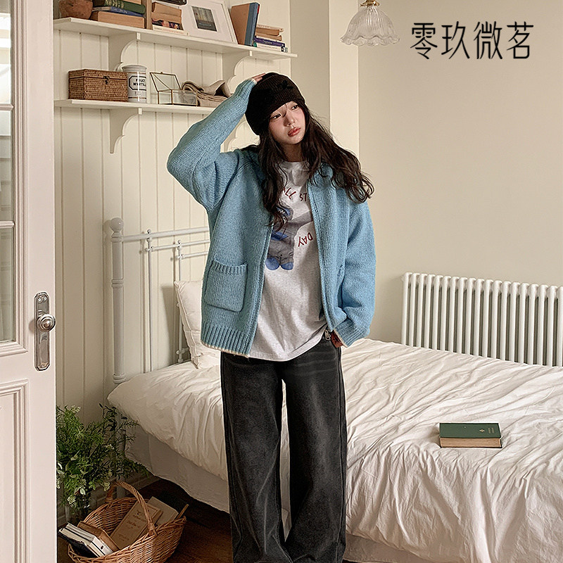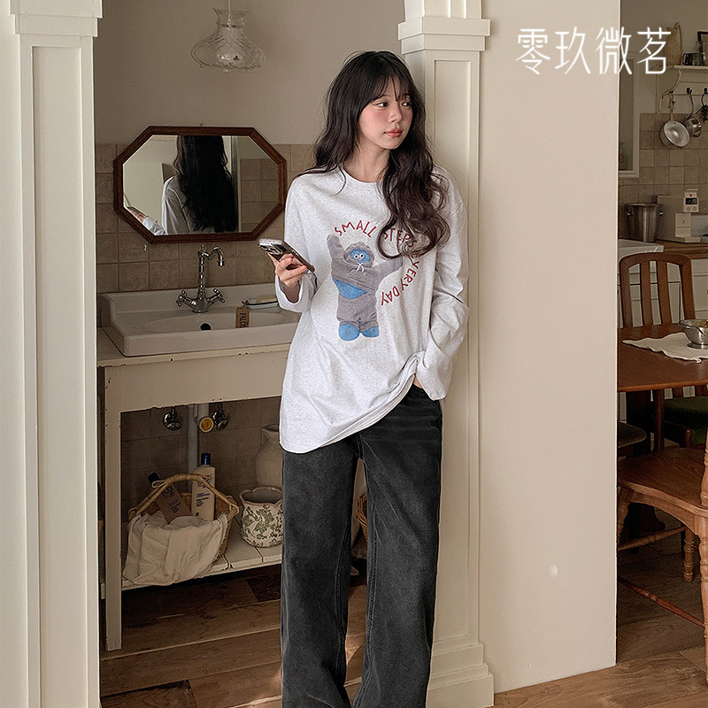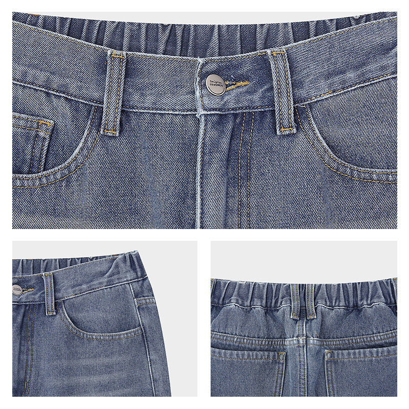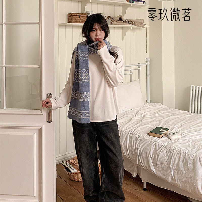 韩国加大码女冬季长裤直筒水洗松紧腰微胖mm显瘦加绒牛仔裤85858