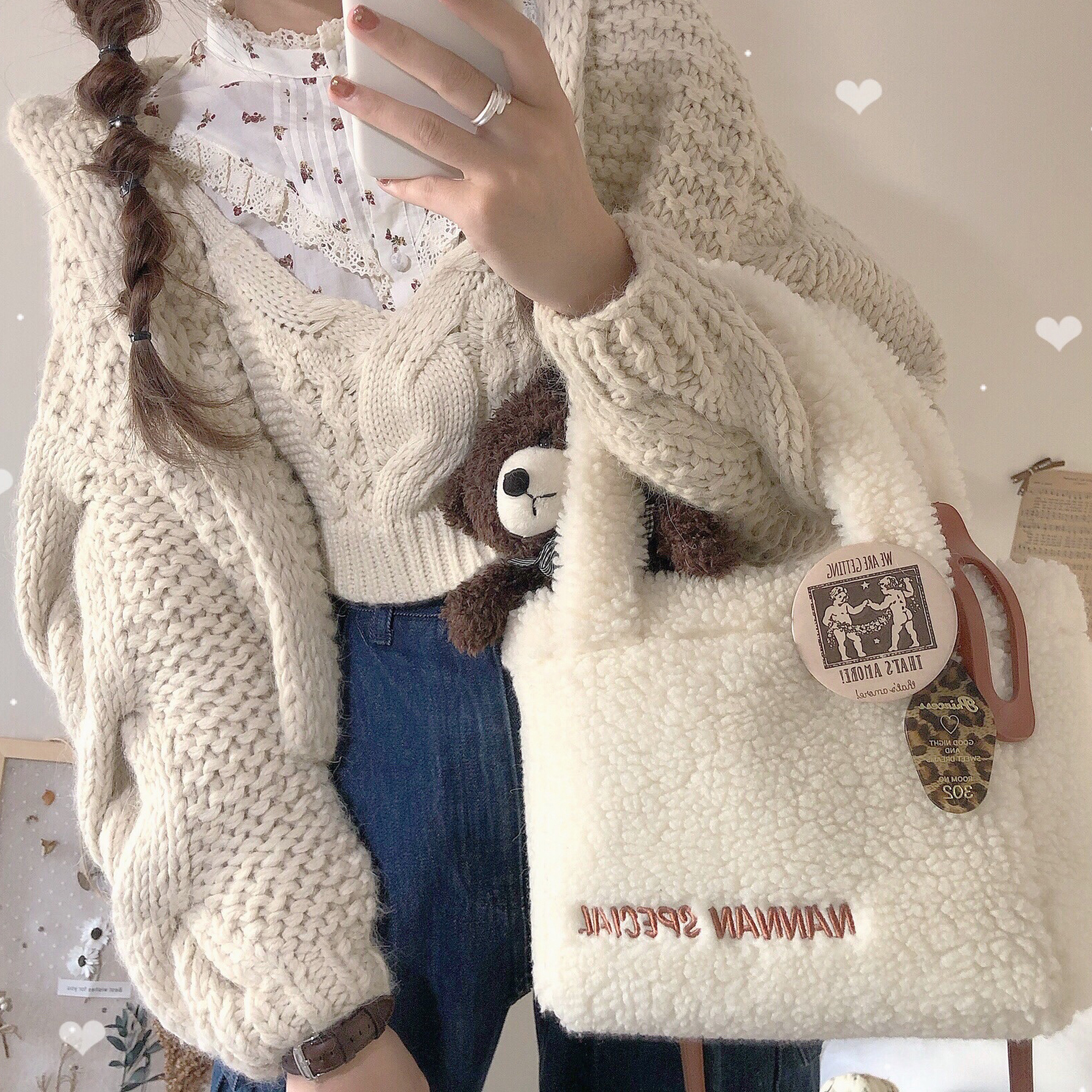 NanNanS崽崽 斜挎手提包包女百搭可爱秋冬日系羊羔毛绒毛茸茸原创