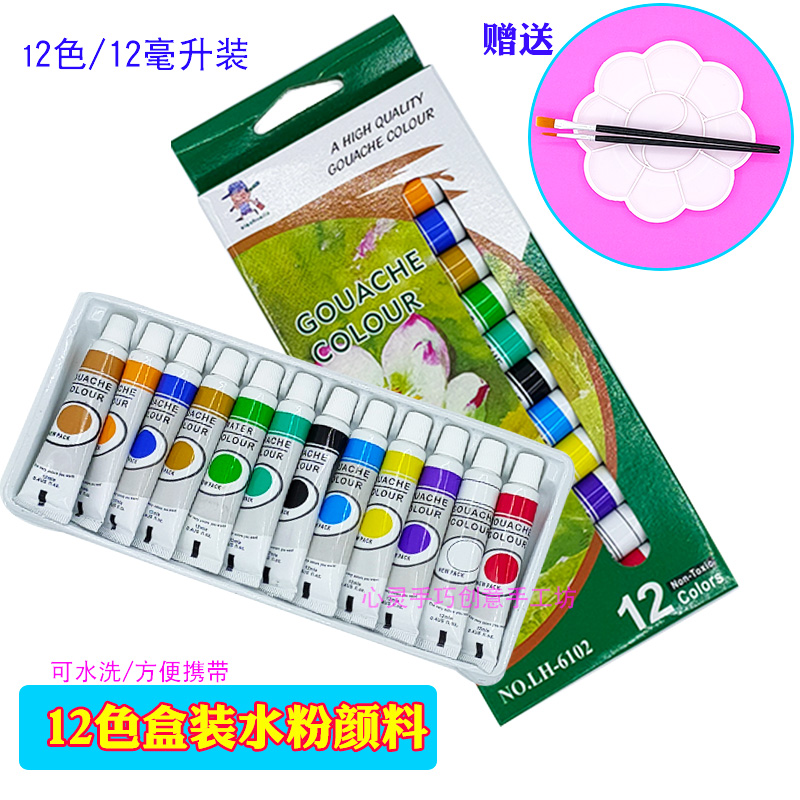 极速12色盒装可水洗水粉颜料儿童A初学者美术绘画软管12ml丙烯颜