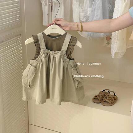 女童2025新款工装背带裙套装夏装韩版儿童两件套连衣裙夏季休闲