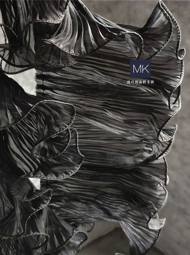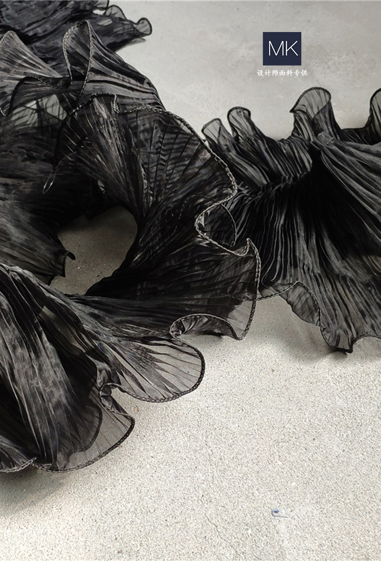 黑和白浪里浪花压褶花边 服装辅料布料 连衣裙婚纱手工diy面料