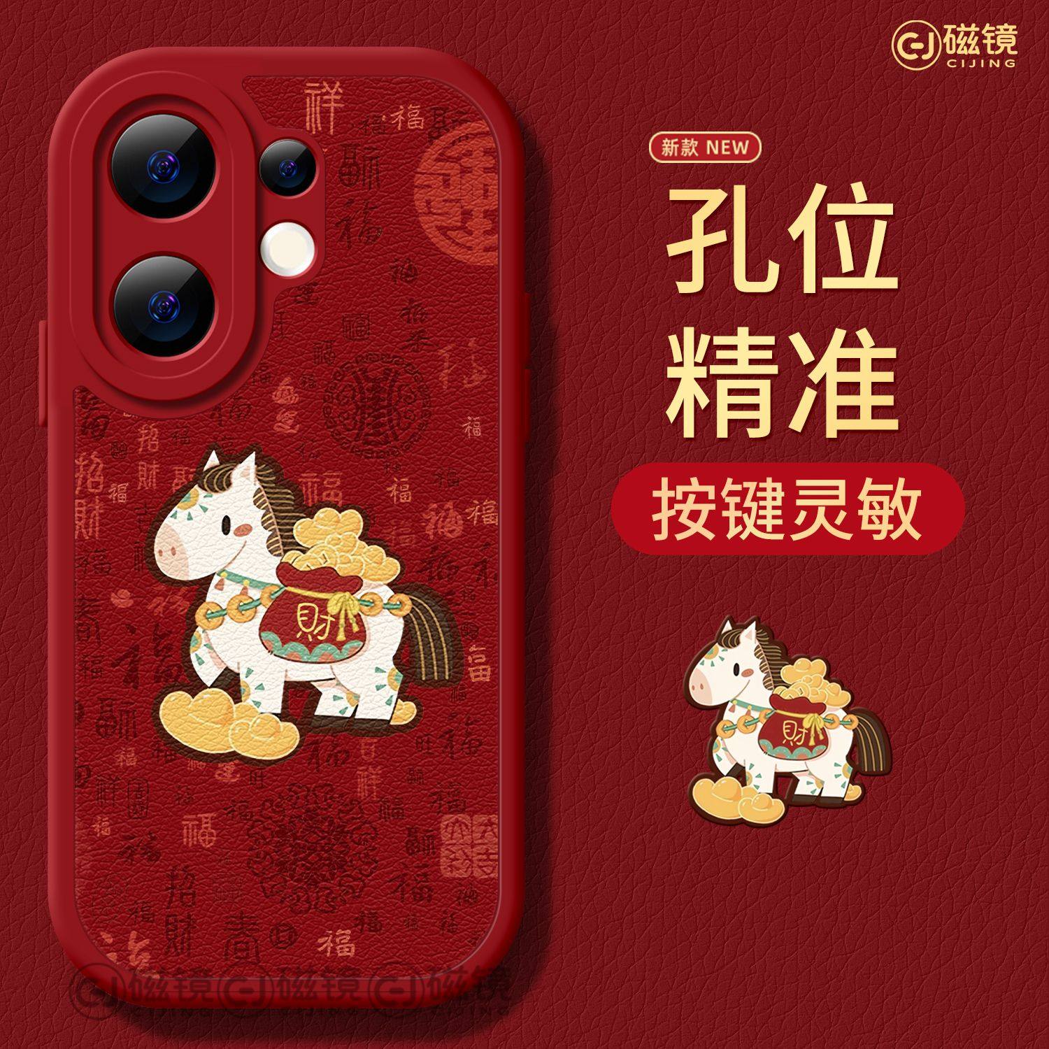 适用vivos50手机壳2026女新款s30pro保护套vivo s16e马新年s15/s12小羊皮s18硅胶mini壳s17红色s9马上有钱s20
