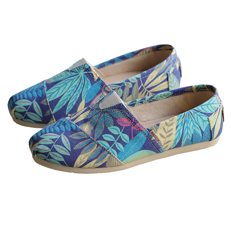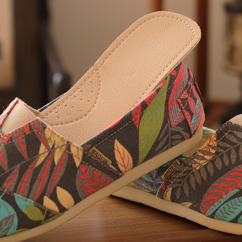 懒人鞋透气低帮一脚蹬印花帆布鞋