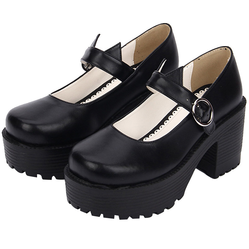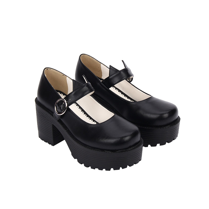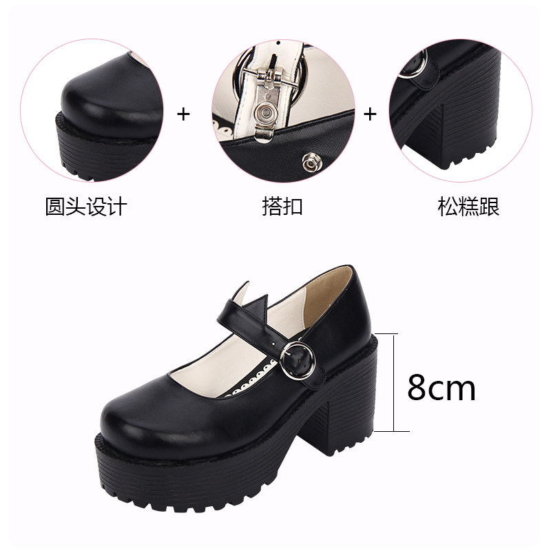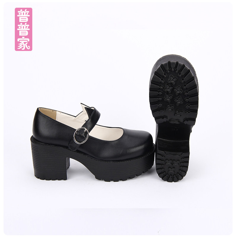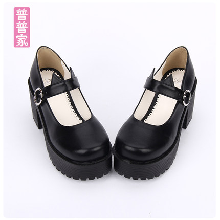 【普普家】2020春季新品学院圆头朋克鞋单带厚底高跟坡跟女鞋8528