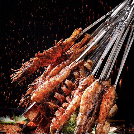 烧烤签子b商用加厚不锈钢扁签烧烤用具烤针羊肉烤肉签串针刚签钎