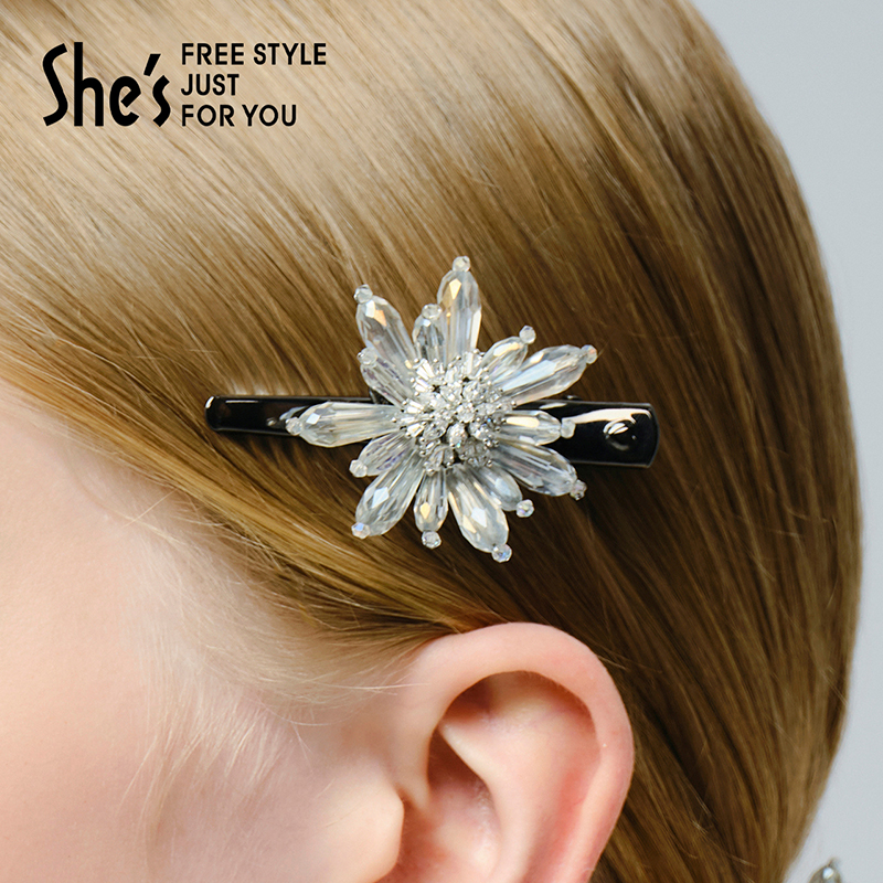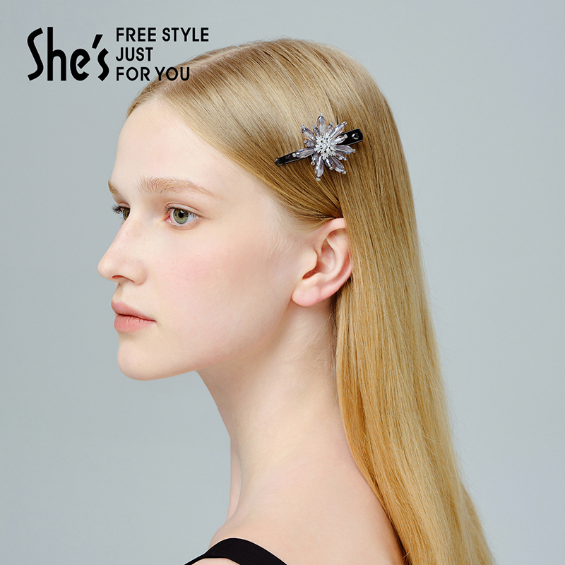 shes茜子冰雪秘境璀璨雪花捏夹刘海边夹女侧边高级感