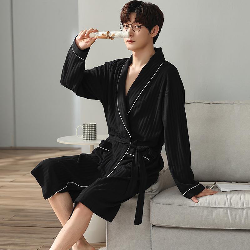 长袖日系男薄款睡袍春秋纯棉男士睡衣浴袍跨境长款男士春夏季和服