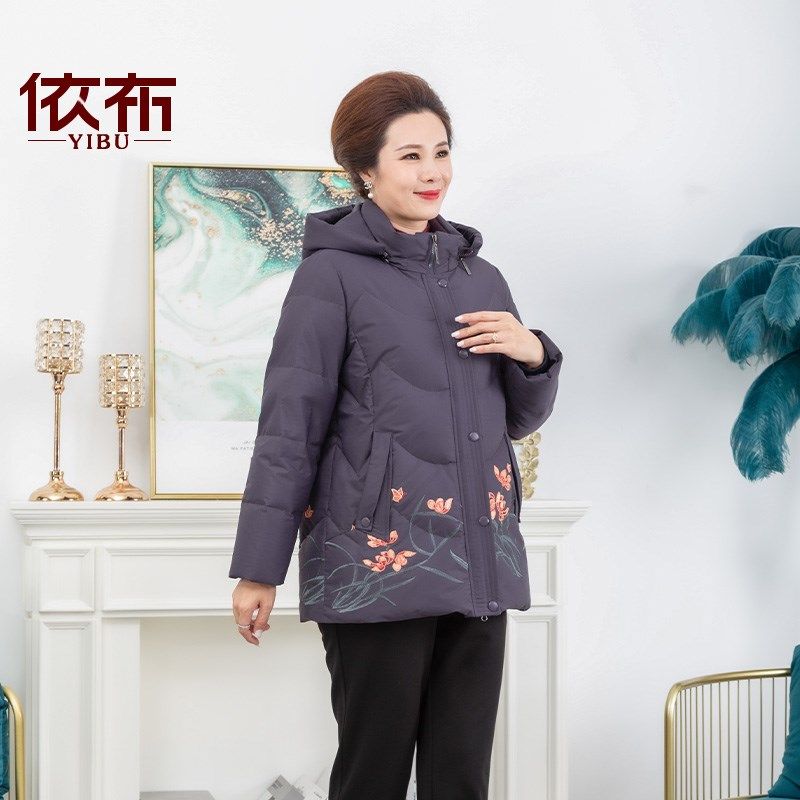 依佈中老年女士冬装新款羽绒服老太太中长款保暖外套小个子妈妈装