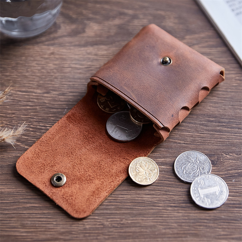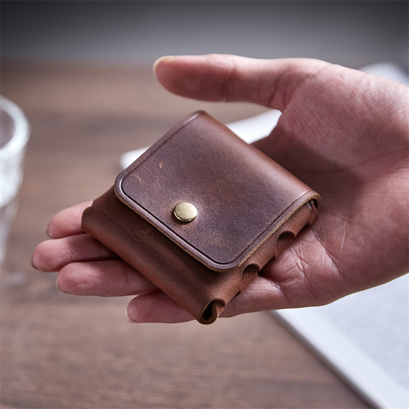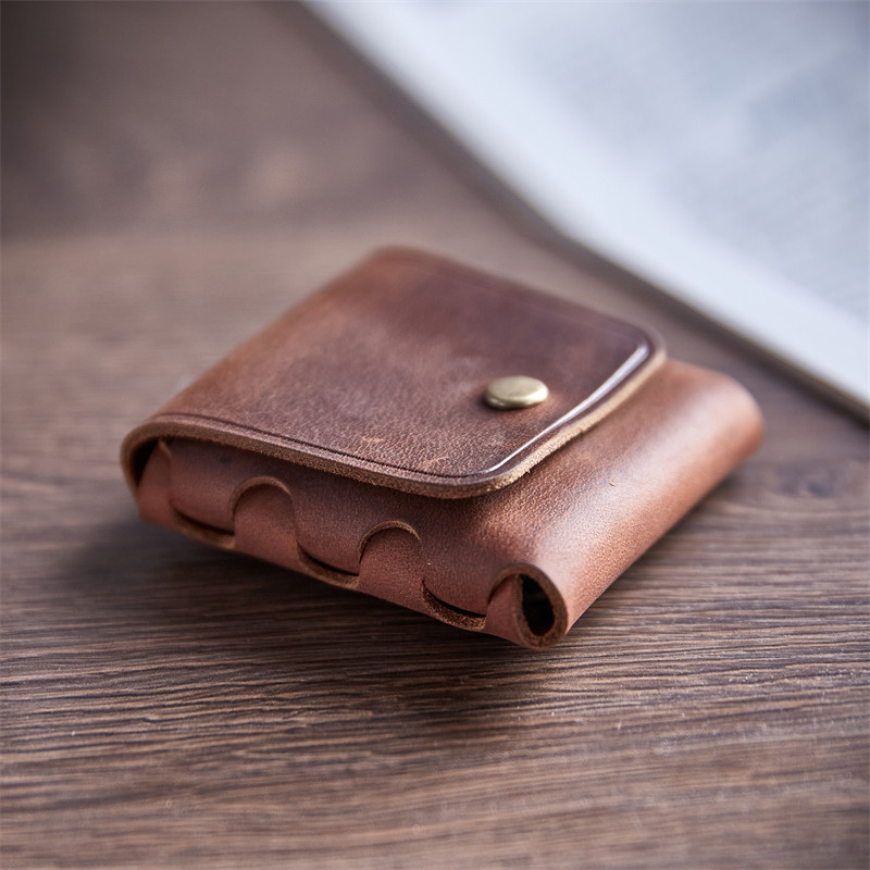 男女迷你零钱包疯马头层牛皮搭扣硬币包真皮耳机保护套短款收纳包