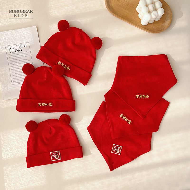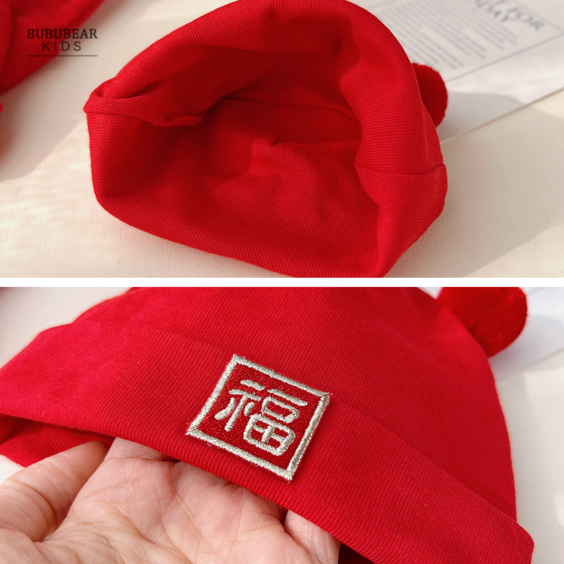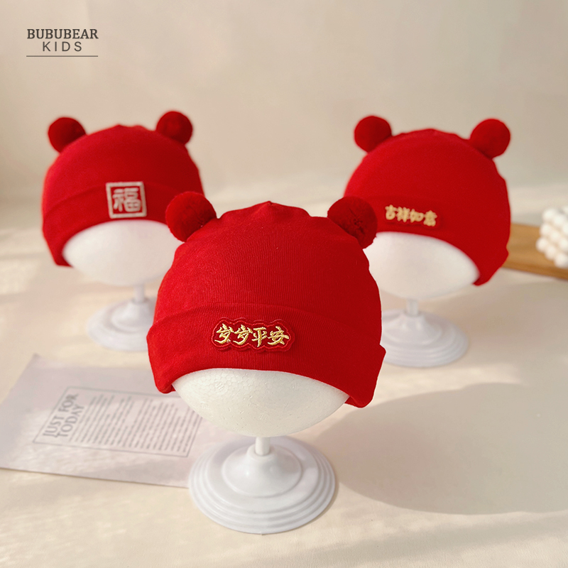新生婴儿帽子春秋满月红色套头帽男女宝宝秋季护囟门帽婴幼儿胎帽