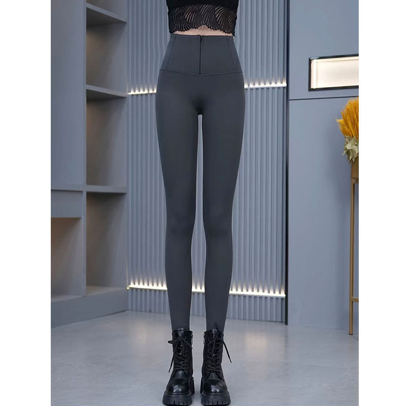 高腰加绒拉链鲨鱼裤女士冬季新款百搭收腹显瘦提臀保暖外穿打底裤
