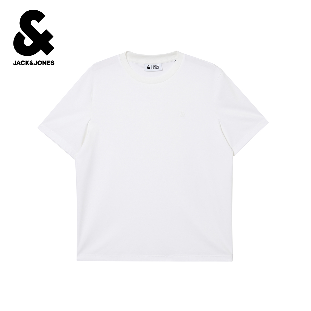 杰克琼斯男装夏季新款T恤简约LOGO胶印百搭舒适罗纹圆领短袖上衣