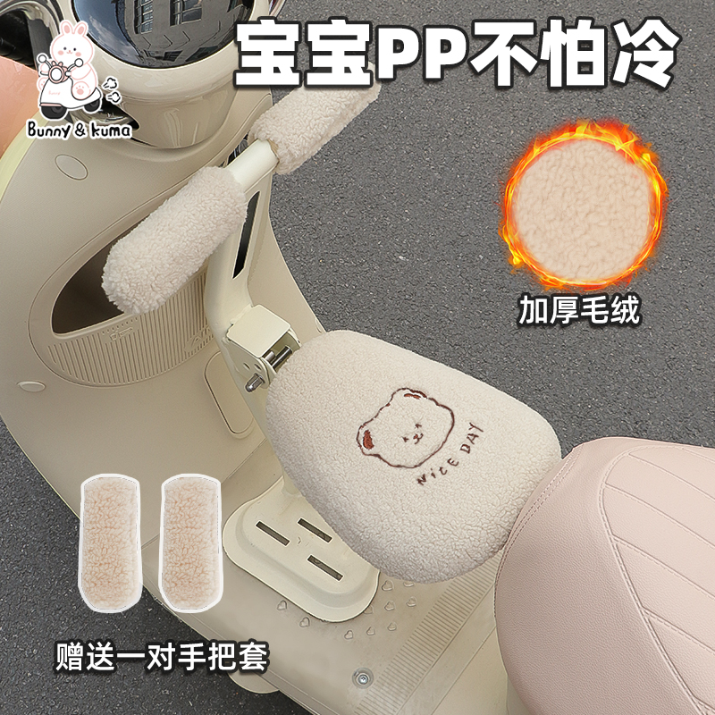 电动车儿童毛绒坐垫加厚保暖
