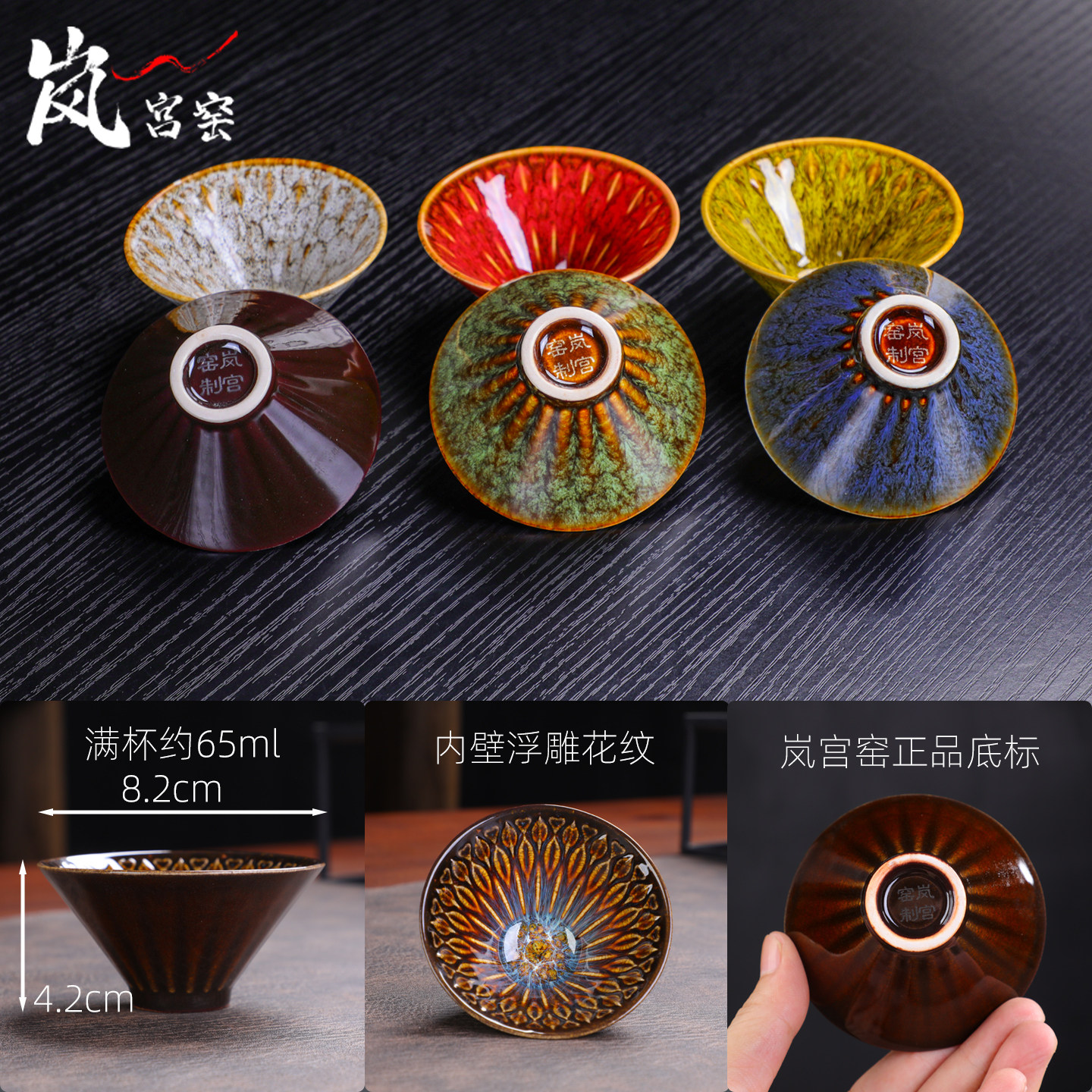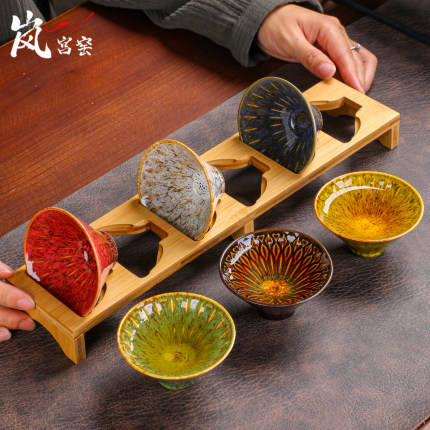 高档六色斗笠杯茶杯6只装陶瓷功夫茶具茶碗品茗杯家用建盏主人杯