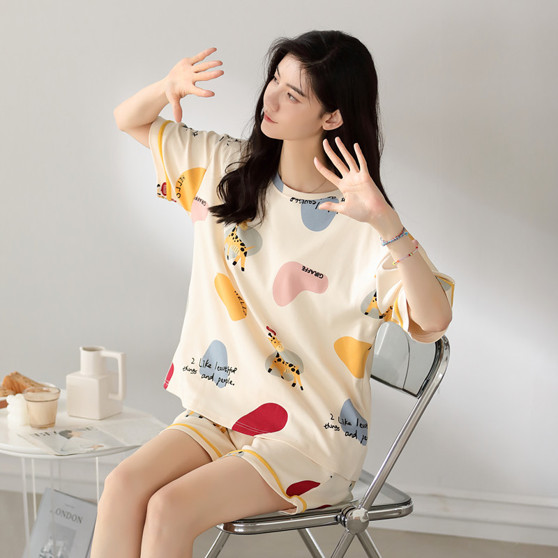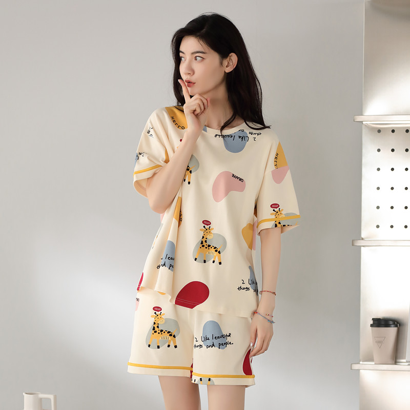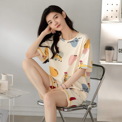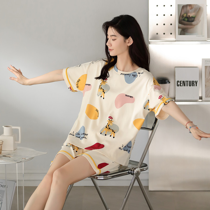 2025新款芬腾休睡衣女士纯棉夏季短袖短裤全棉家居服套装可外穿薄