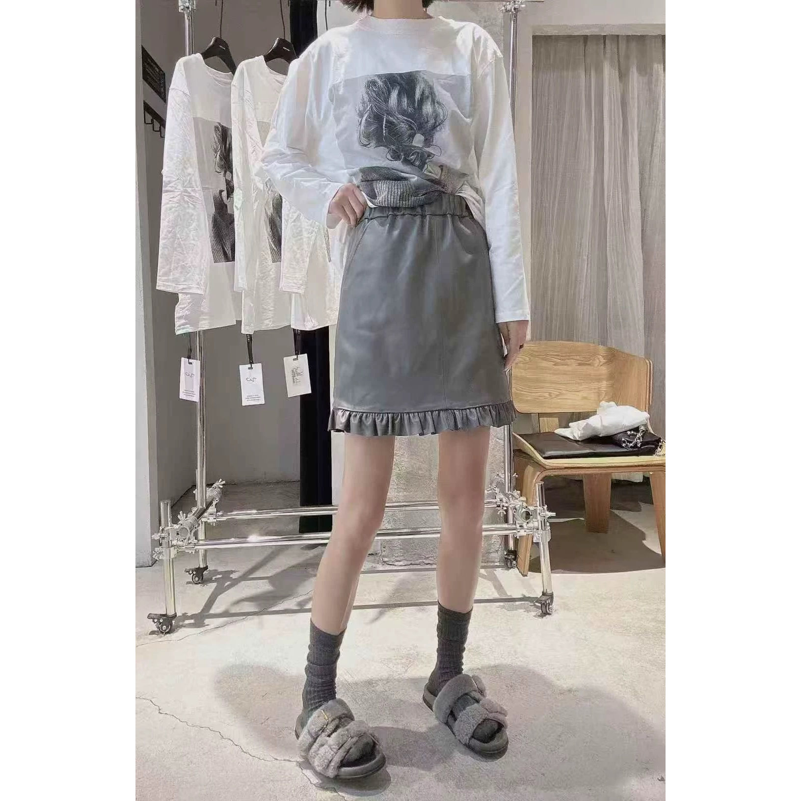 2025秋季新款真皮皮裙女高级感高腰显瘦气质百搭松紧腰花边半身裙