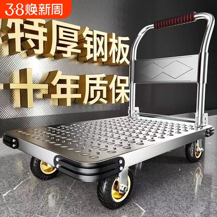 平板车手推车小推车拉货四轮搬运车家用折叠小拉车铁板车承重摆摊