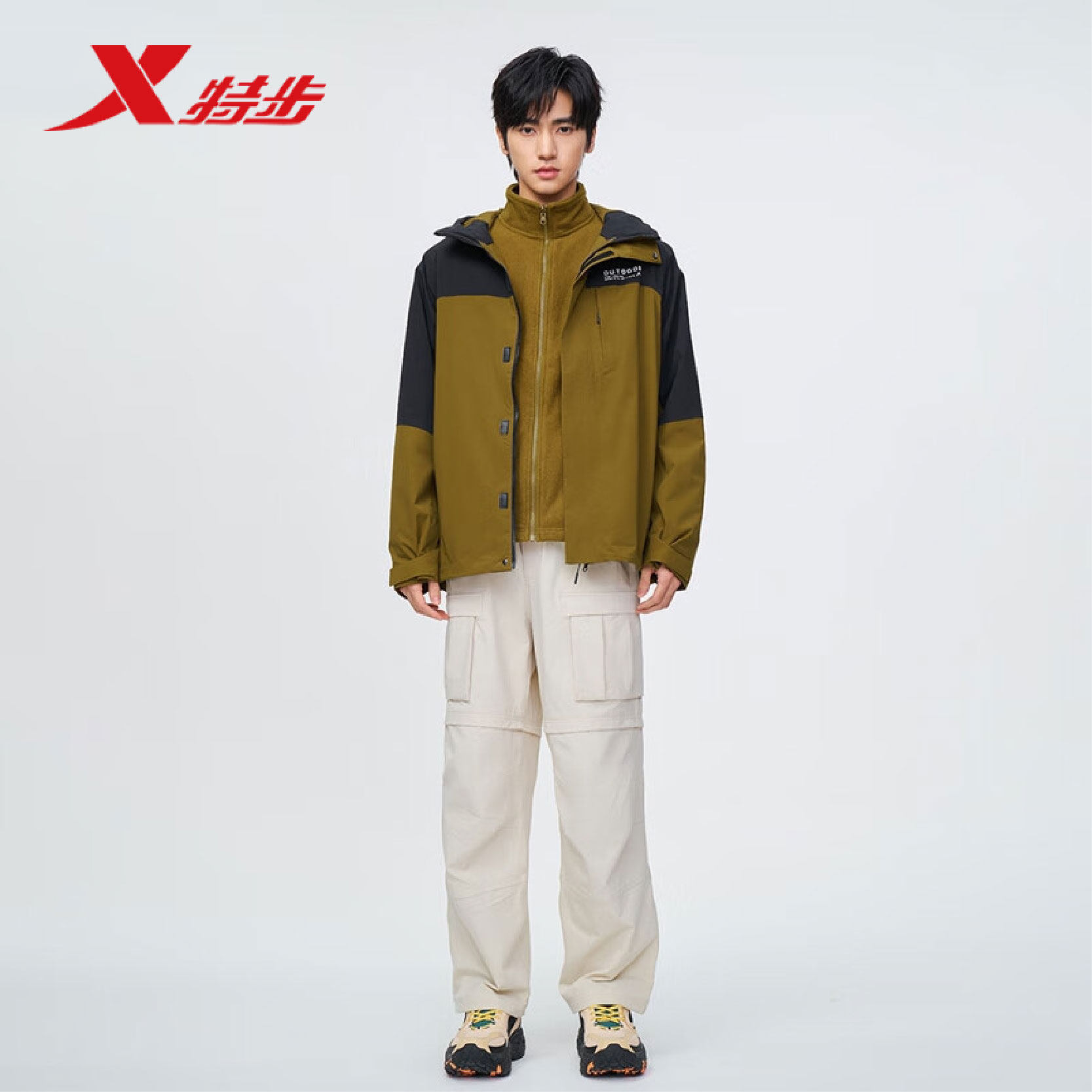 特步冲锋衣男2025冬季新款两件套三合一梭织保暖外套9754272E0415