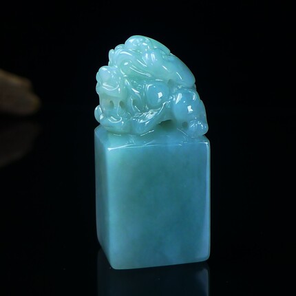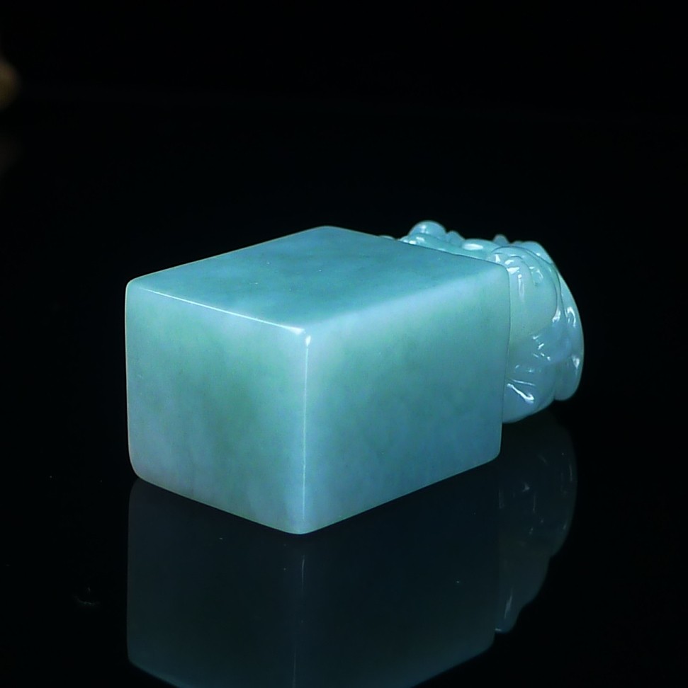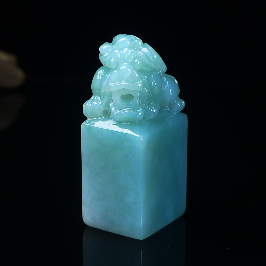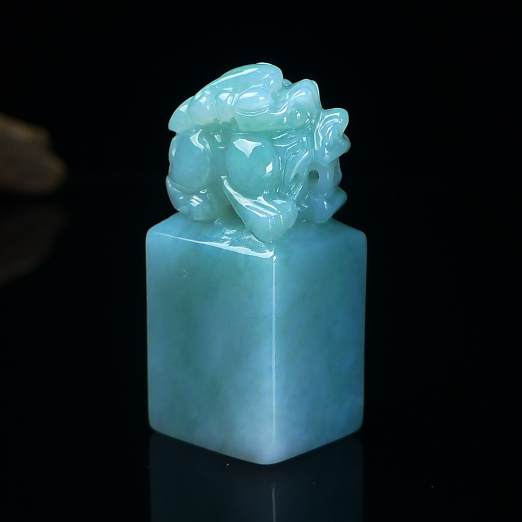 缅甸天然翡翠A货印章玉石 冰润浅绿翡翠貔貅印章摆件 篆刻代刻字