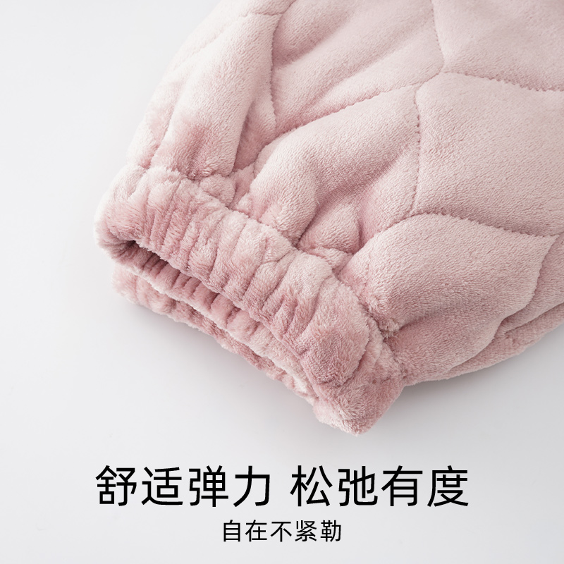 浪莎三层夹棉睡裤女冬季加绒加厚珊瑚绒法兰绒大码长裤家居裤保暖