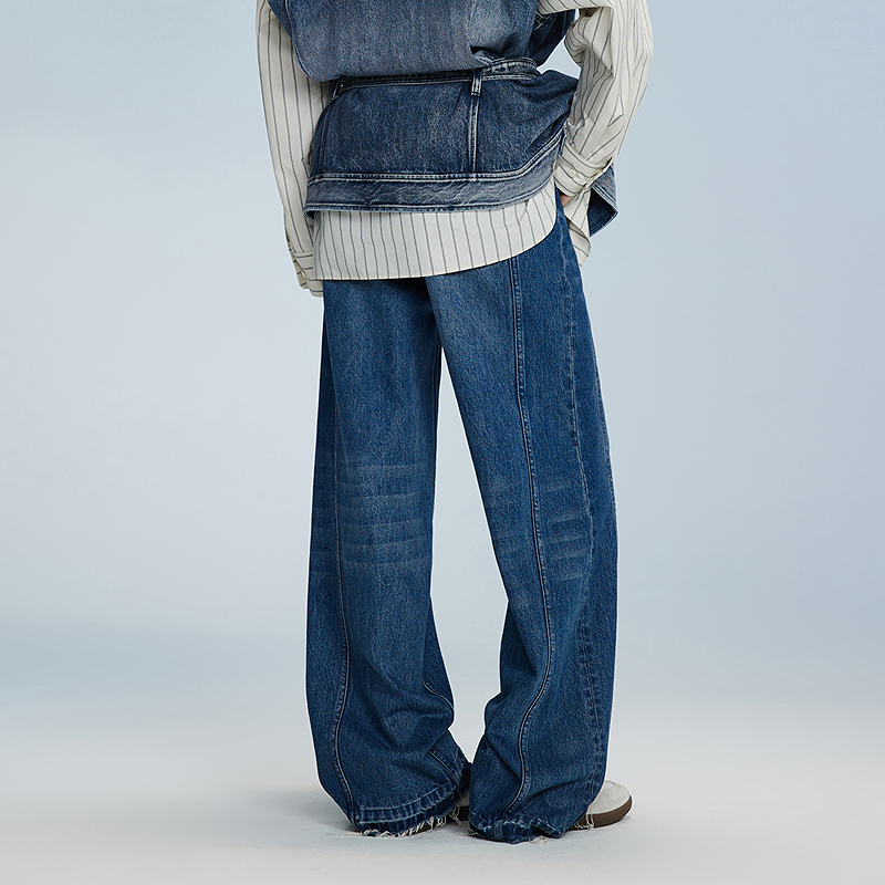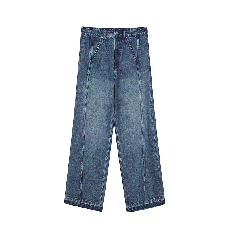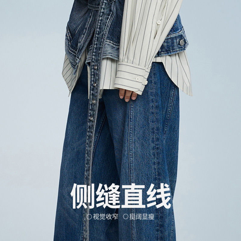 LESS春秋水洗牛仔裤女设计感高腰宽松休闲拖地阔腿裤子2O8E12680