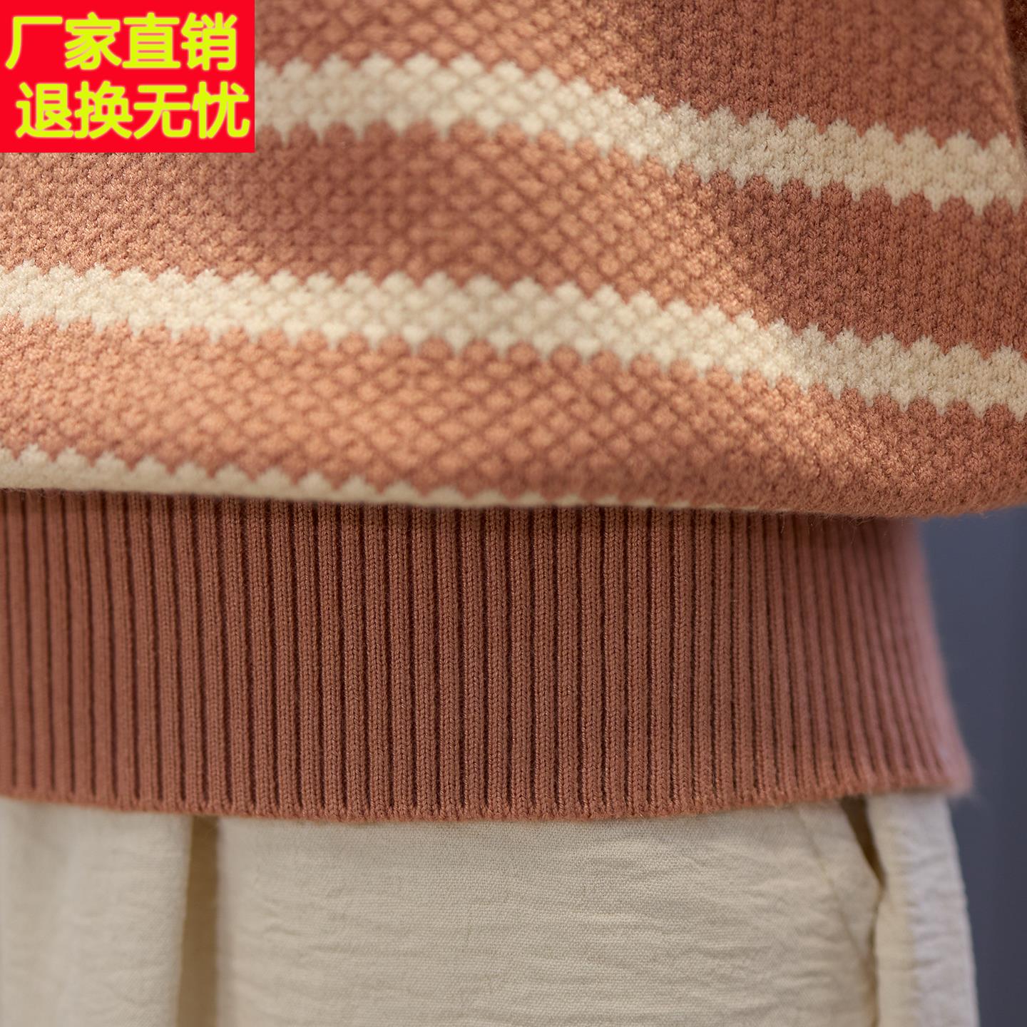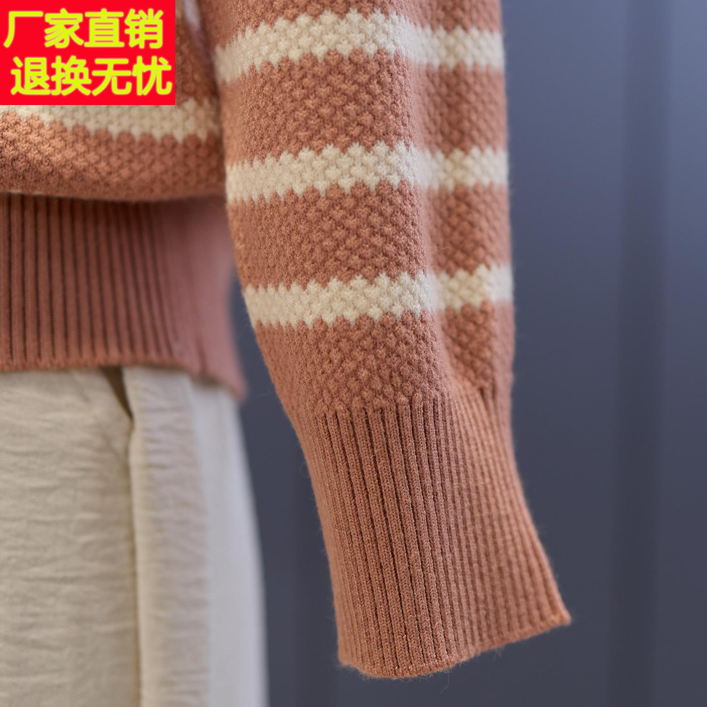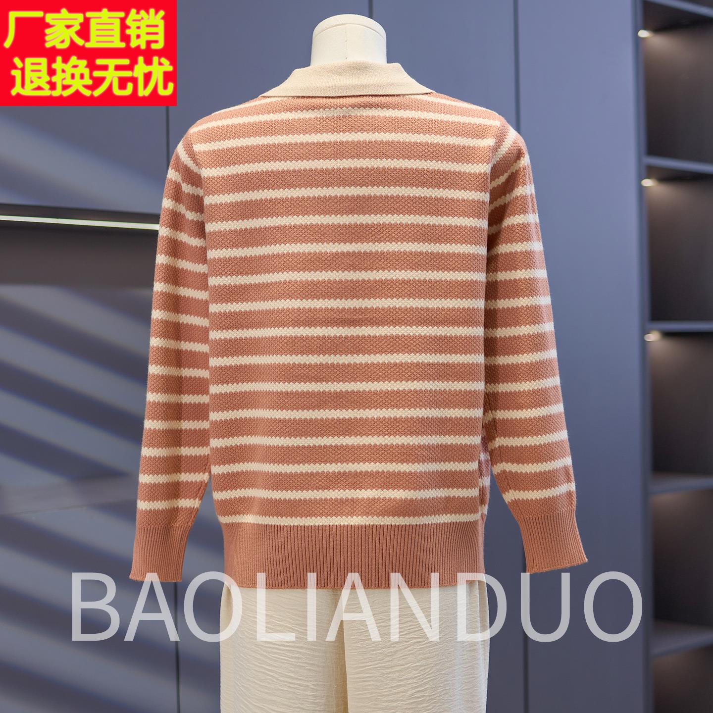 洋气妈妈秋装针织打底衫中年女装新款翻领上衣中老年春秋条纹小衫
